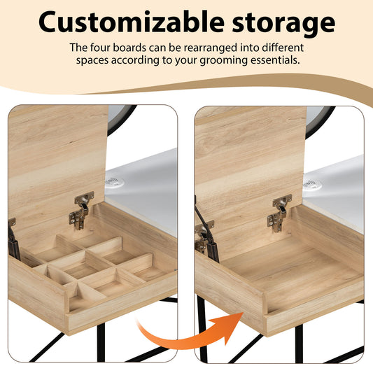 Makeup Vanity Table With LED Lights, 3 Color Options, Power Outlet