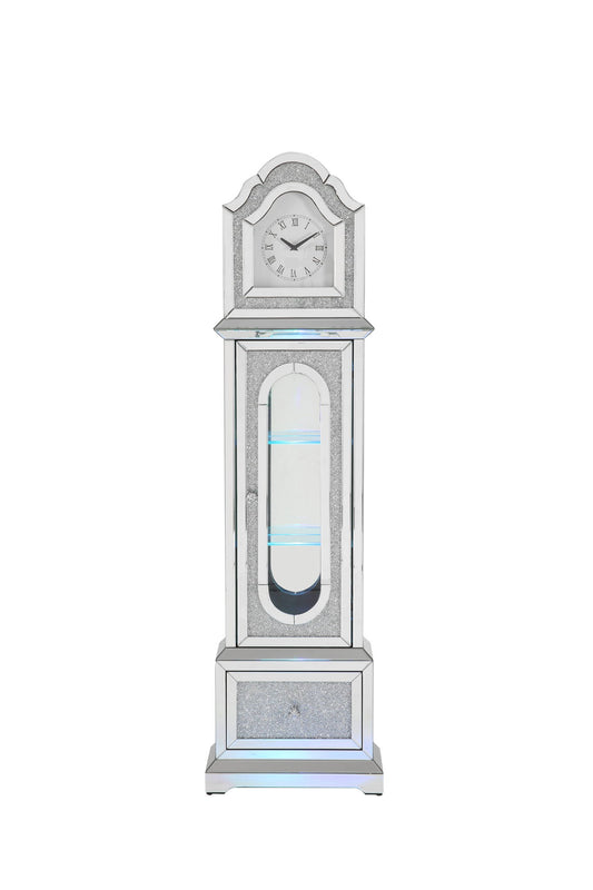 Noralie - Mirrored & Faux Diamonds Grandfather Clock With LED - Silver Gray