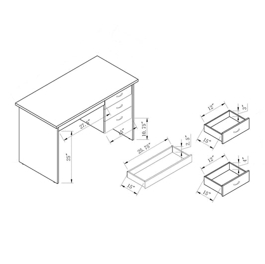 Three Locking Drawers On Metal Glides Student Desk Work Desk Modesty Panel Metal Bar Handles - Mahogany