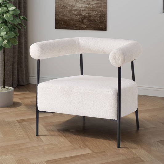 Modern Boucle Fabric Upholstered Accent Chair, Curved Armchair With Metal Frame - White