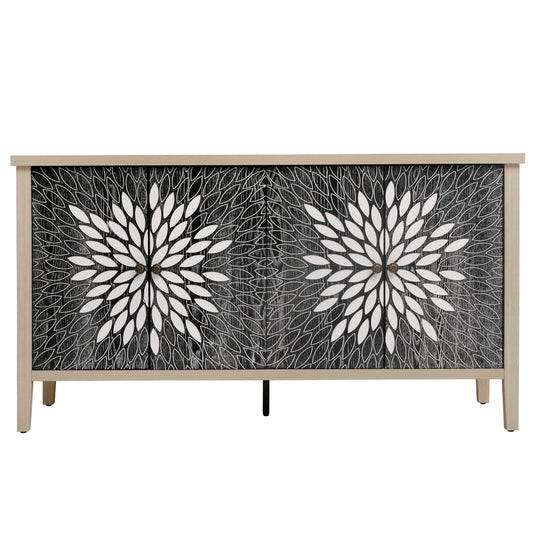 Carved 4 Door Sideboard With Storage, Adjustable Shelf