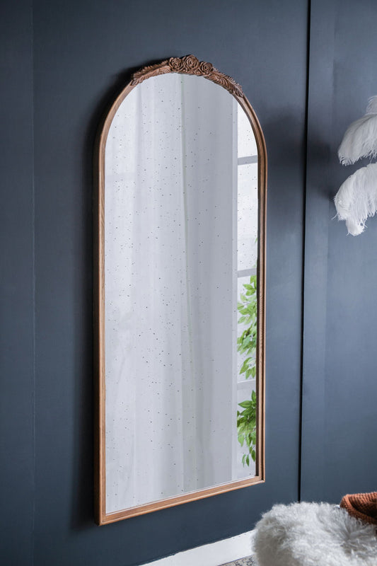 Hand Carved Rose Antique Mirror Frame, Large Arch Mirror Wall Decor For Living Room, Bathroom, Entryway - Brown