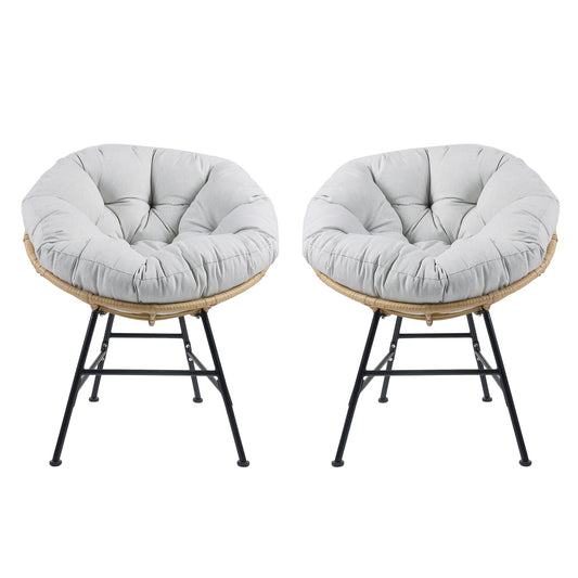 Outdoor Wicker Chair With Geometric Cross Base, (Set of 2) - Gray