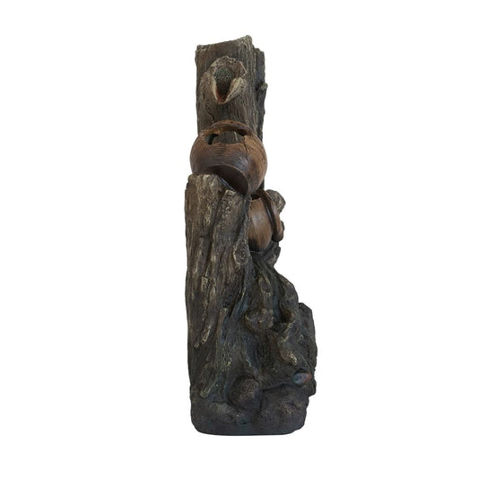 Rustic Decorative Tree Trunk 5 Tier Water Fountain, With Light And Pump, For Indoor And Outdoor - Brown