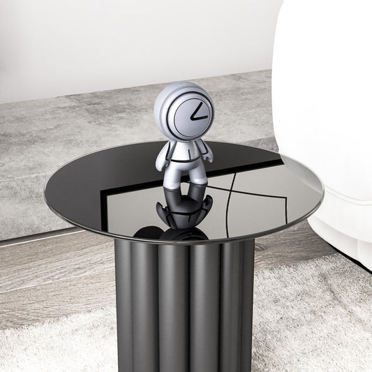 Round Tempered Glass Table Top Clear Glass, Thick Beveled Polished Edge - Black