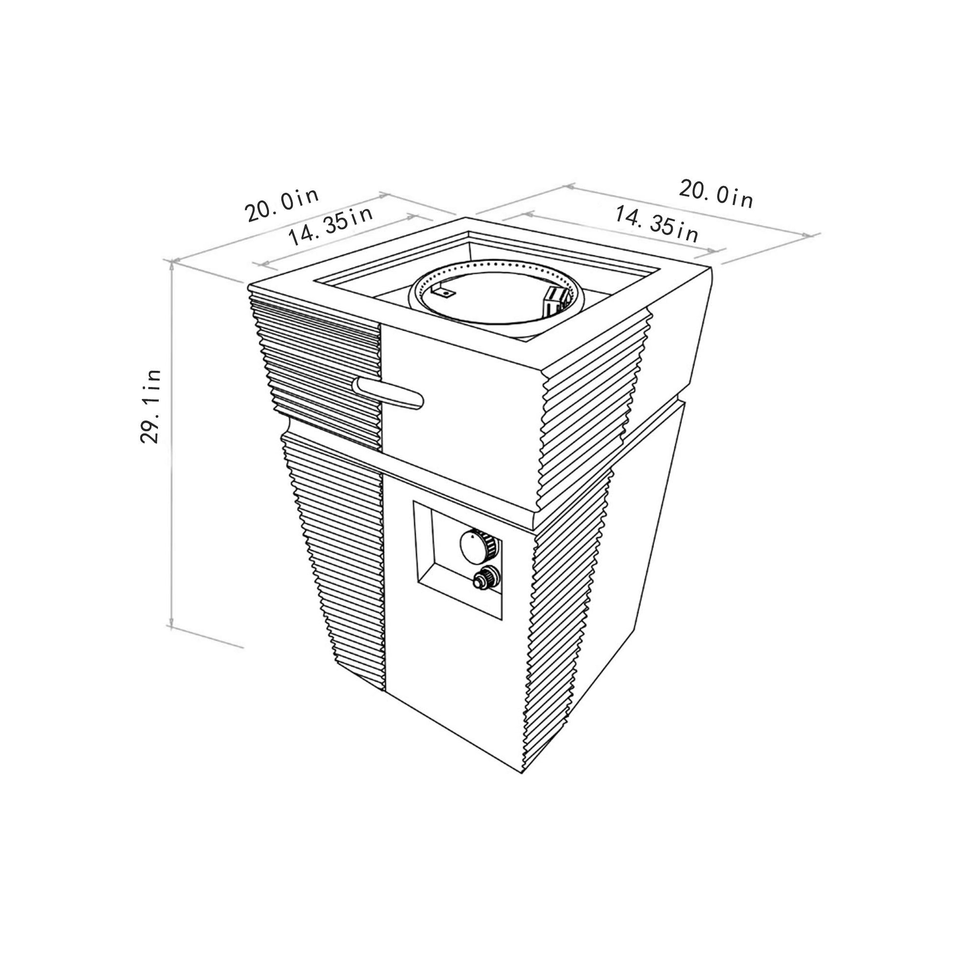 20" Propane Gas Fire Pit Table, 50000 Btu Square Concrete Fire Pit For Outside Patio Deck Garden Backyard - Light Gray Blue