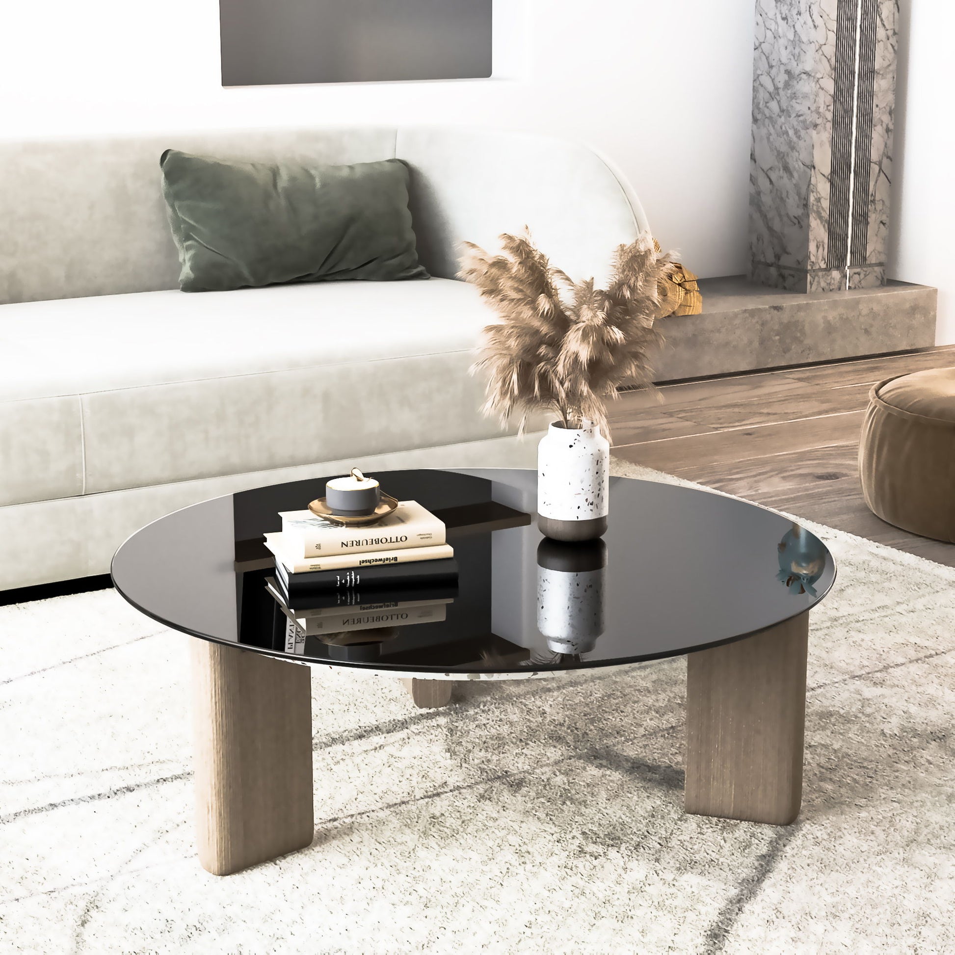 36" Round Tempered Glass Table Top Black Glass 1 / 4" Thick Round Polished Edge - Black