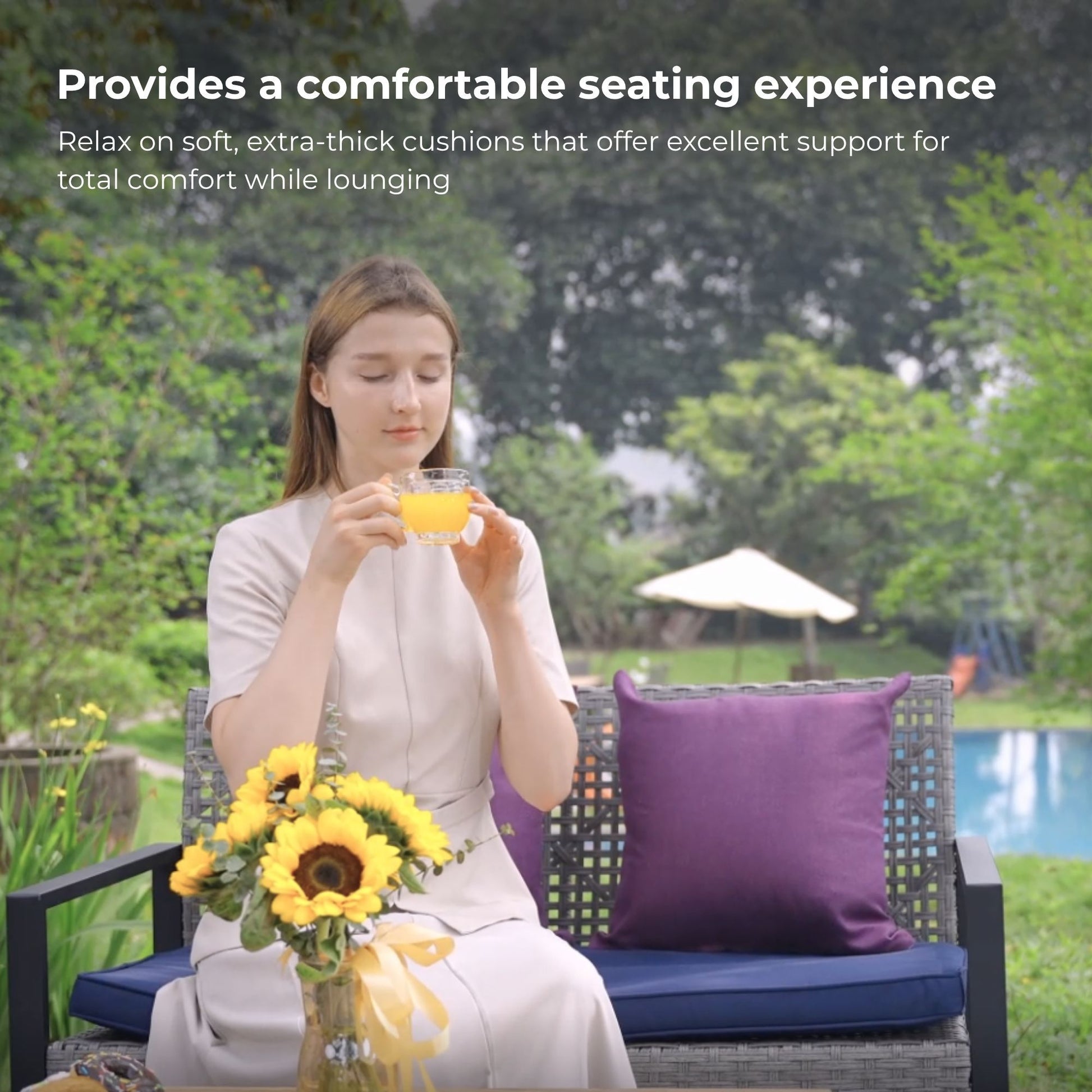 - Modern Set in Cozy Home: Versatile and stylish outdoor patio furniture set, designed to enhance any outdoor space with comfort and elegance.