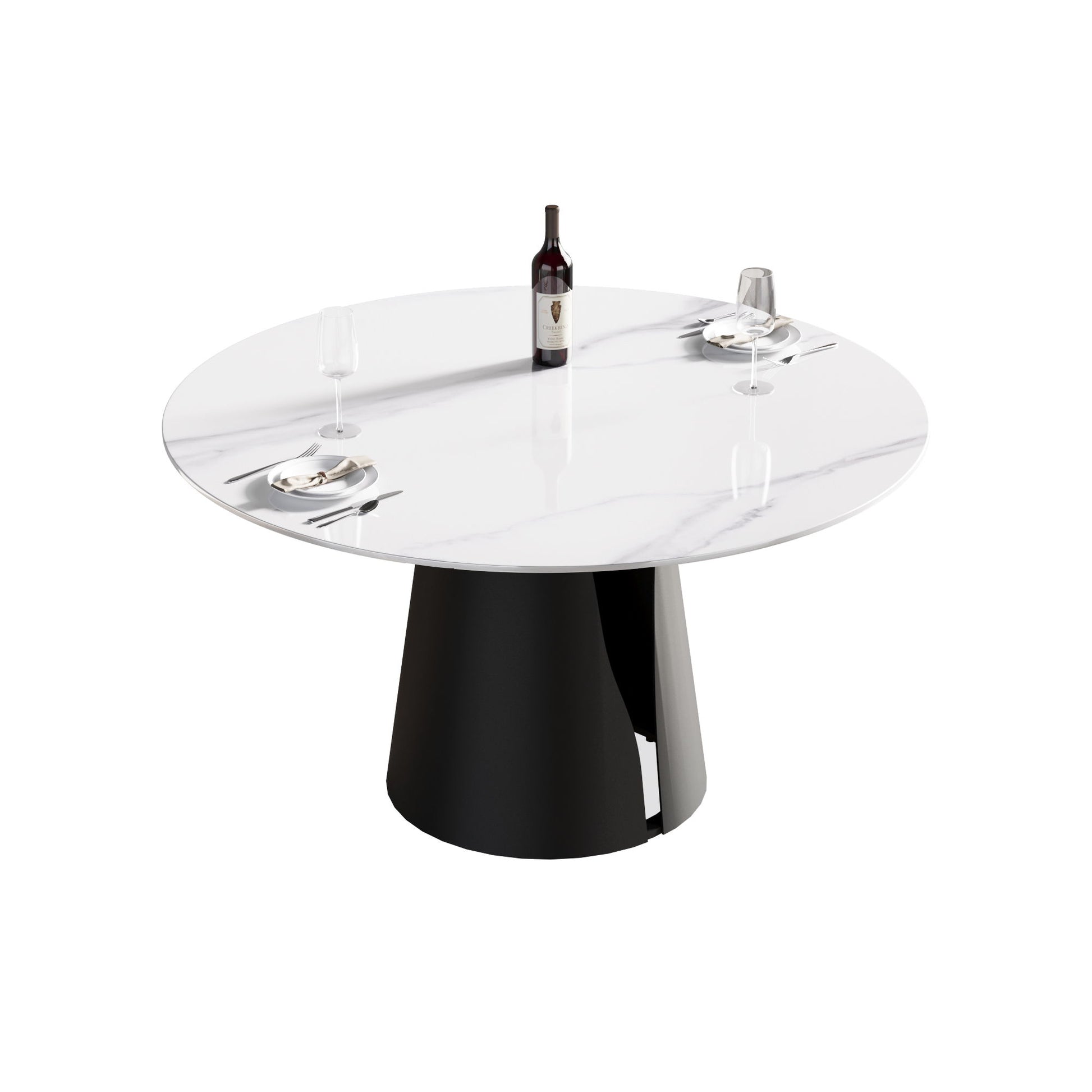 53.15" Modern Artificial Stone Round Carbon Steel Base Dining Table, Can Accommodate 6 People - White / Black