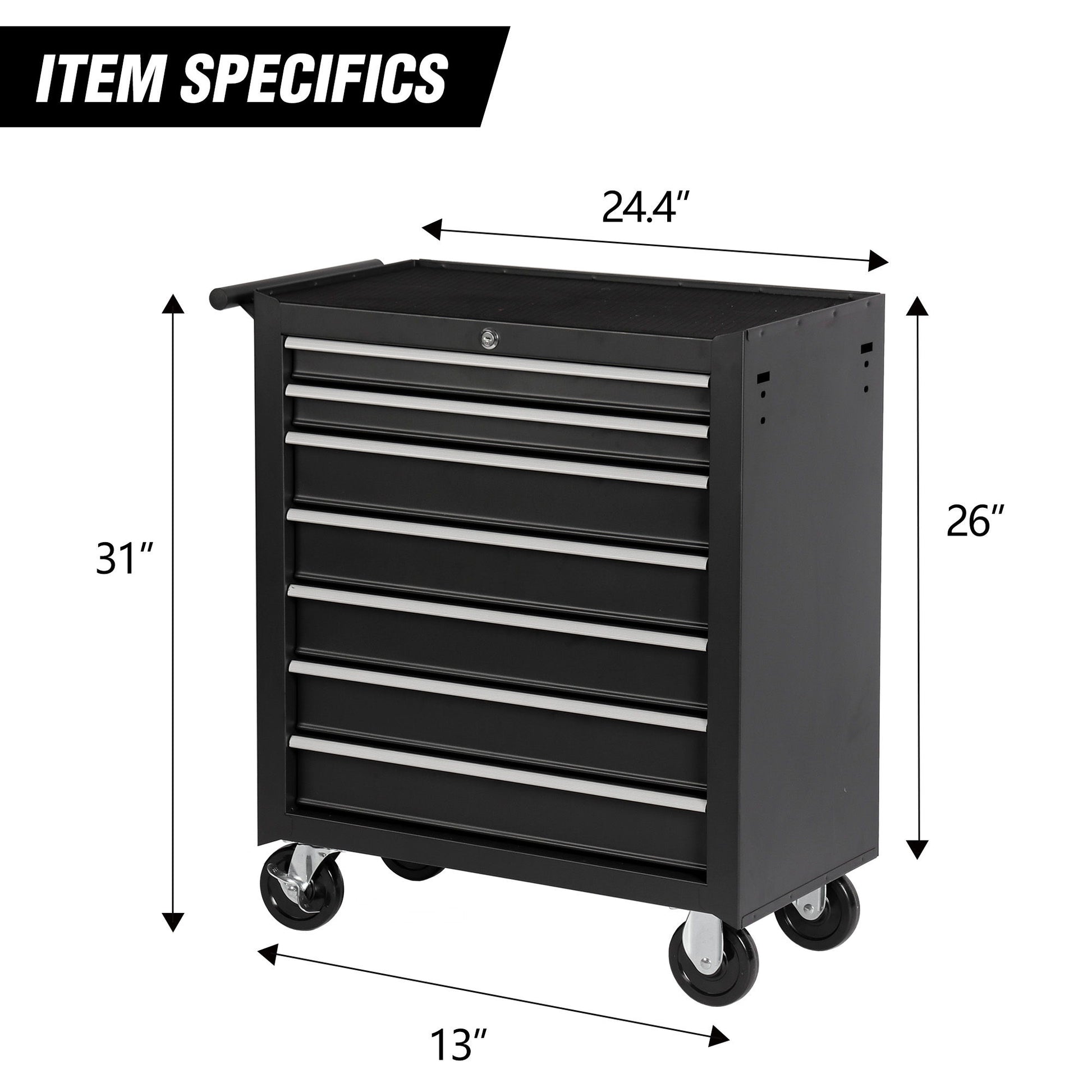 7 Drawer Rolling Tool Chest With Wheels, Multifunctional Tool Box And Storage Cabinet For Garage, Workshop, Or Repair Shop - Black