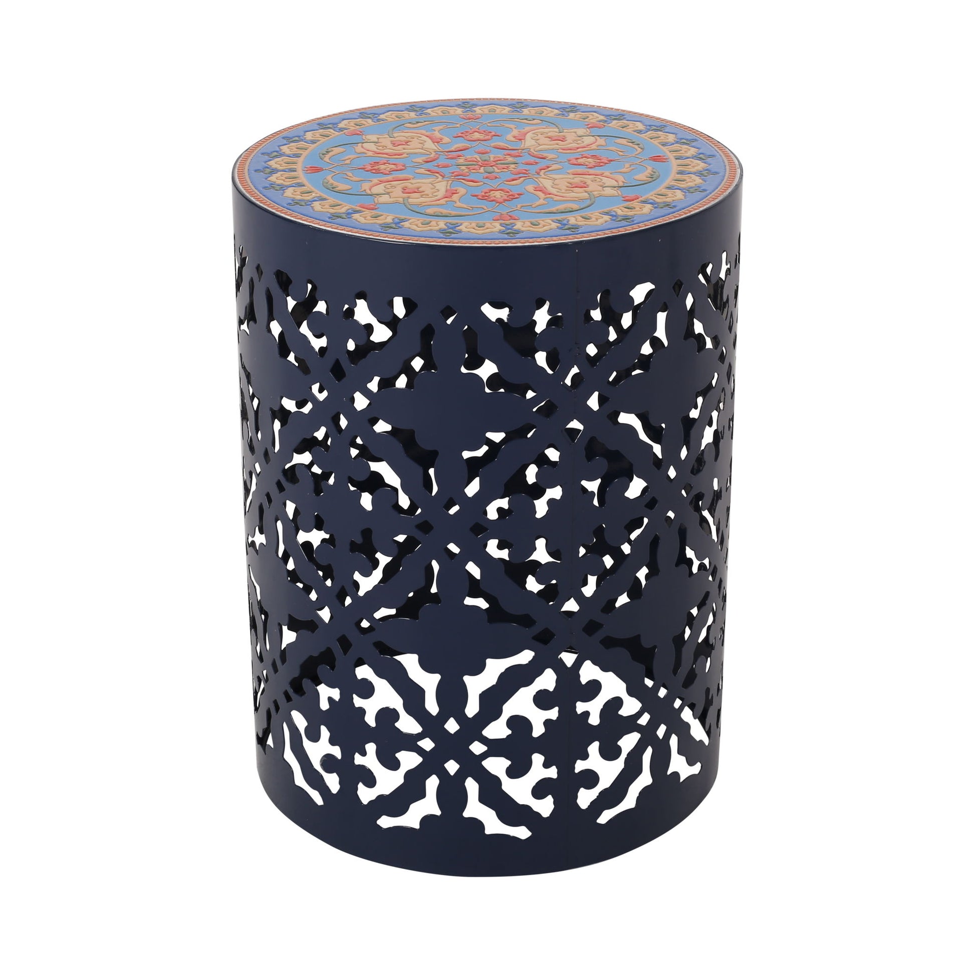 Outdoor Lace Cut Metal Side Table - Dark Blue