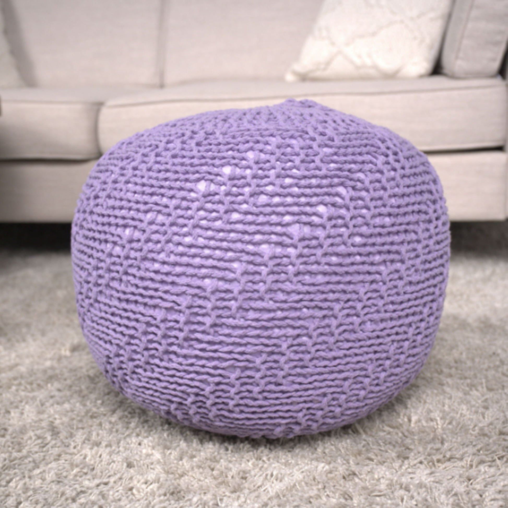 Bordeaux - Knitted Cotton Round Pouf Ottoman - Lavender
