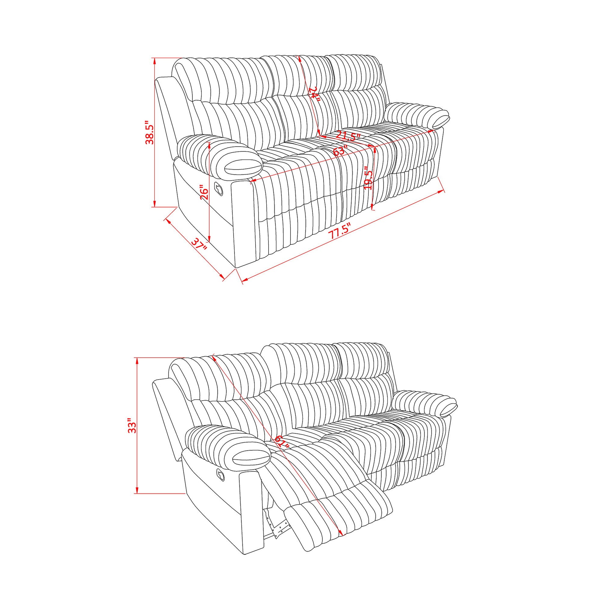Brenda - Sofa With Manual Recline Function