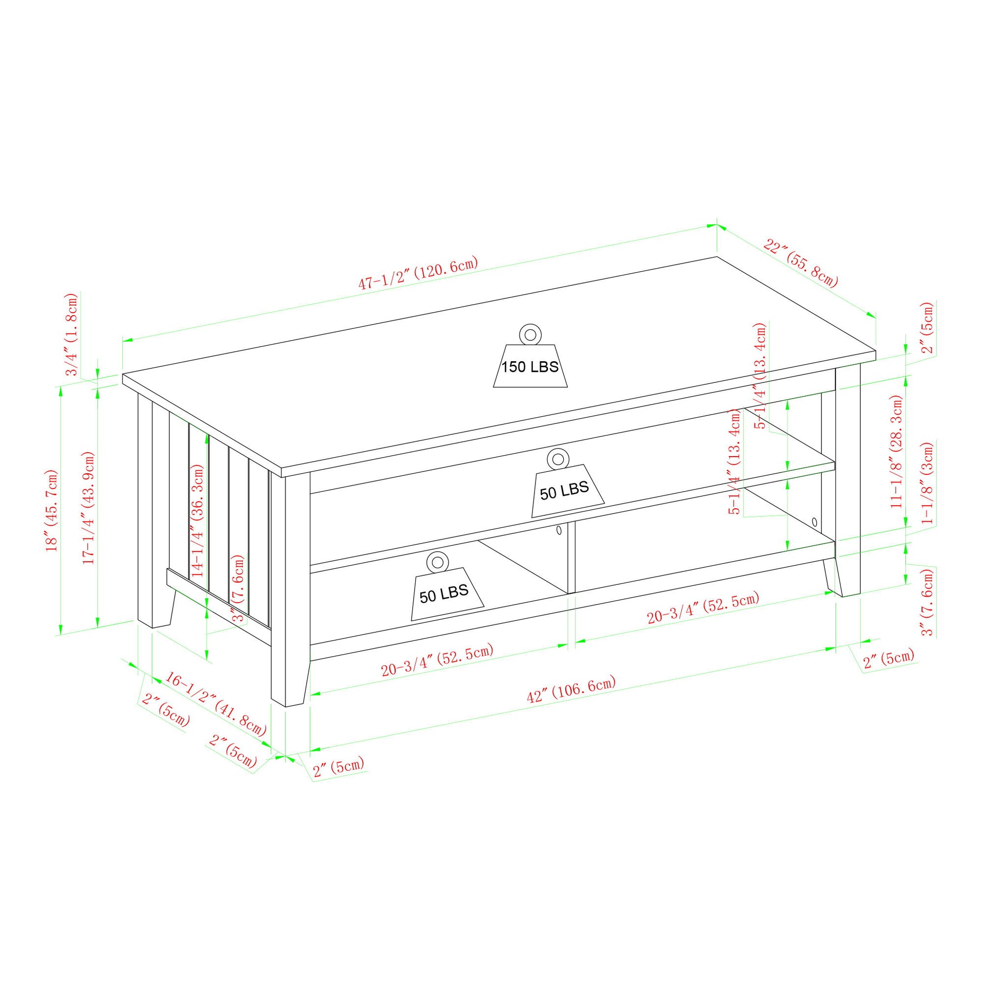 47.5"W x 22.0"D x 18.0"H - 62.0 lb