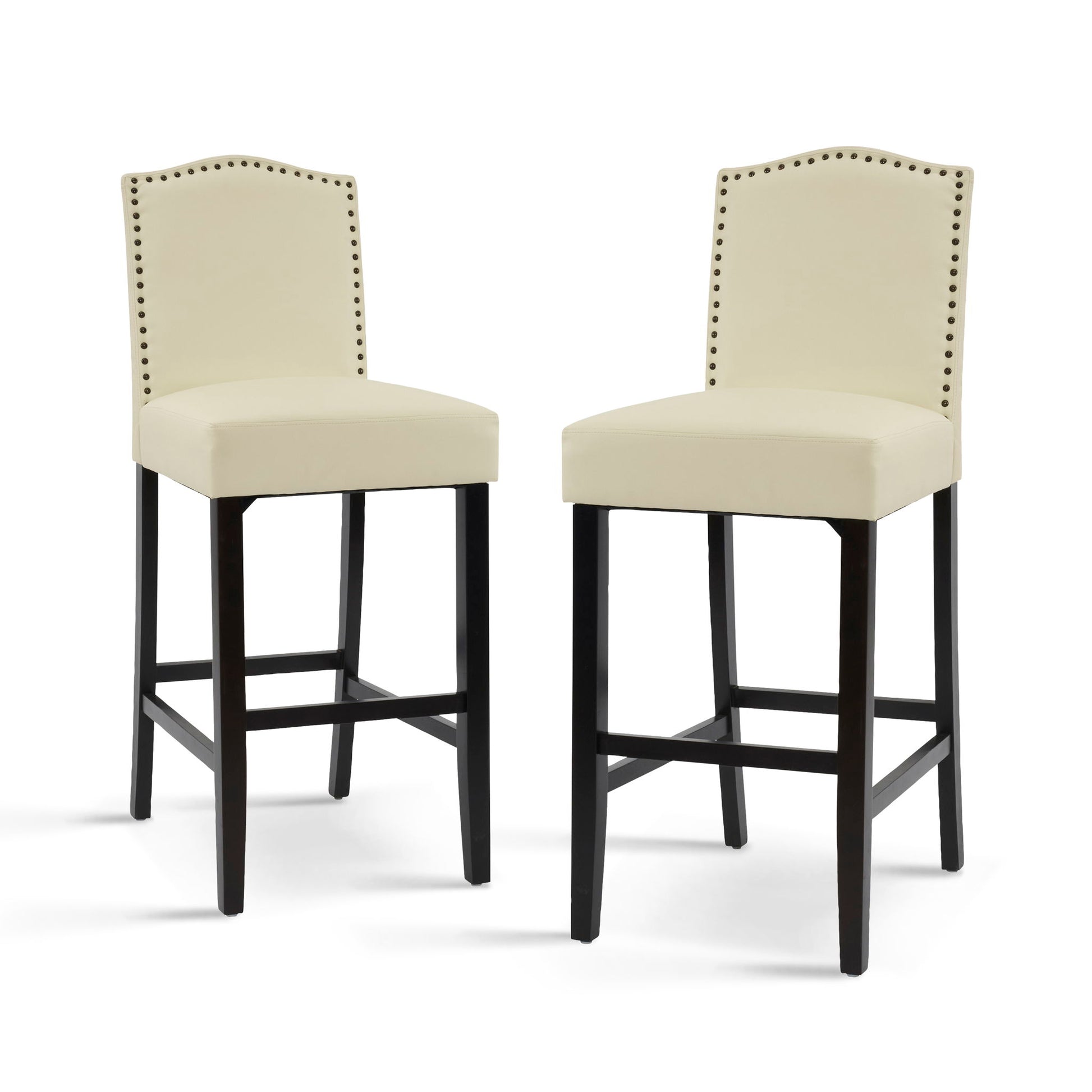 Barstools (Set of 2), Counter Height Upholstered Bar Stools For Kitchen Island - Beige