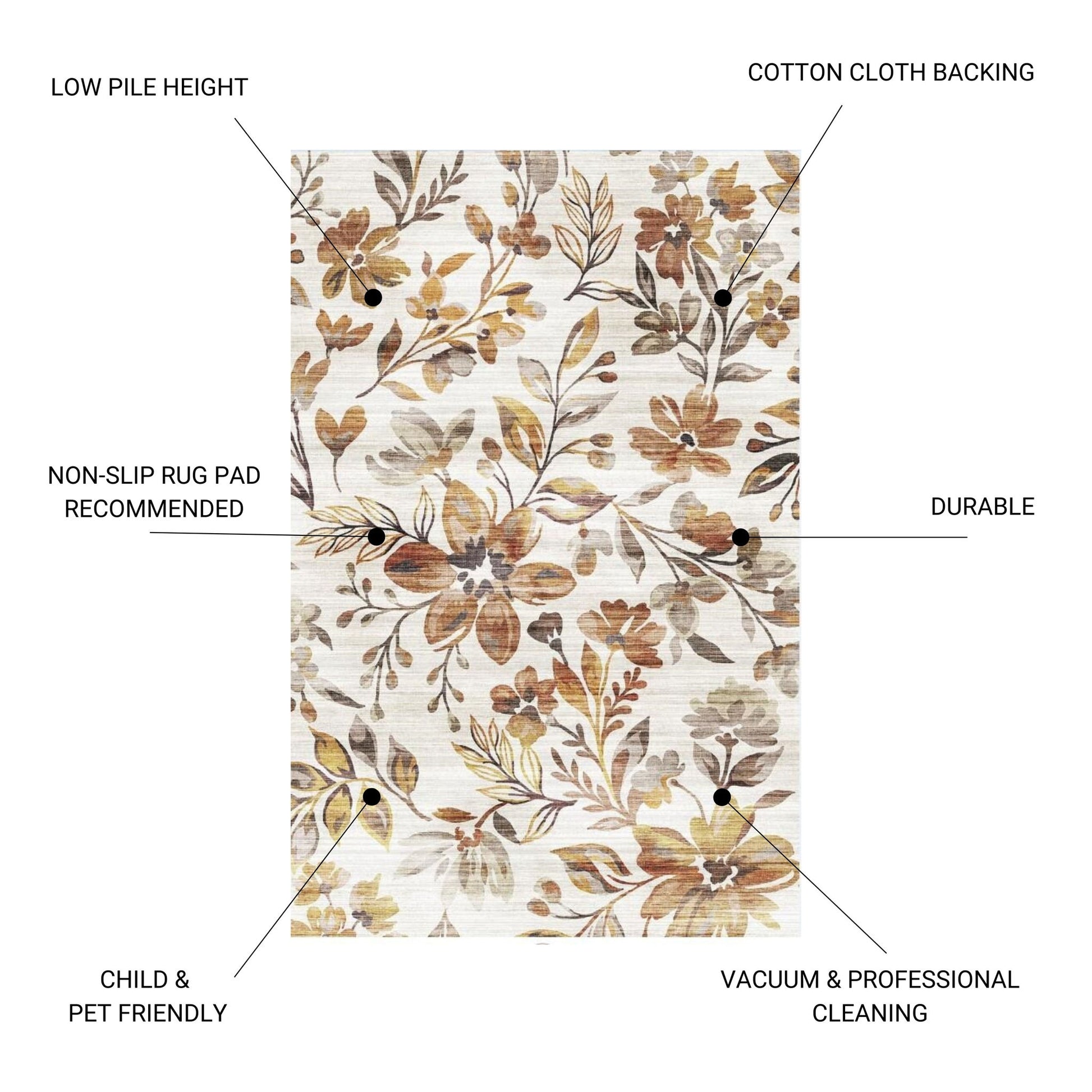 - Material Composition: Made from polyester pile yarn with a polyester and cotton backing, this durable rug is designed for long-lasting use. A non-slip rug pad is recommended for added safety and cushioning.