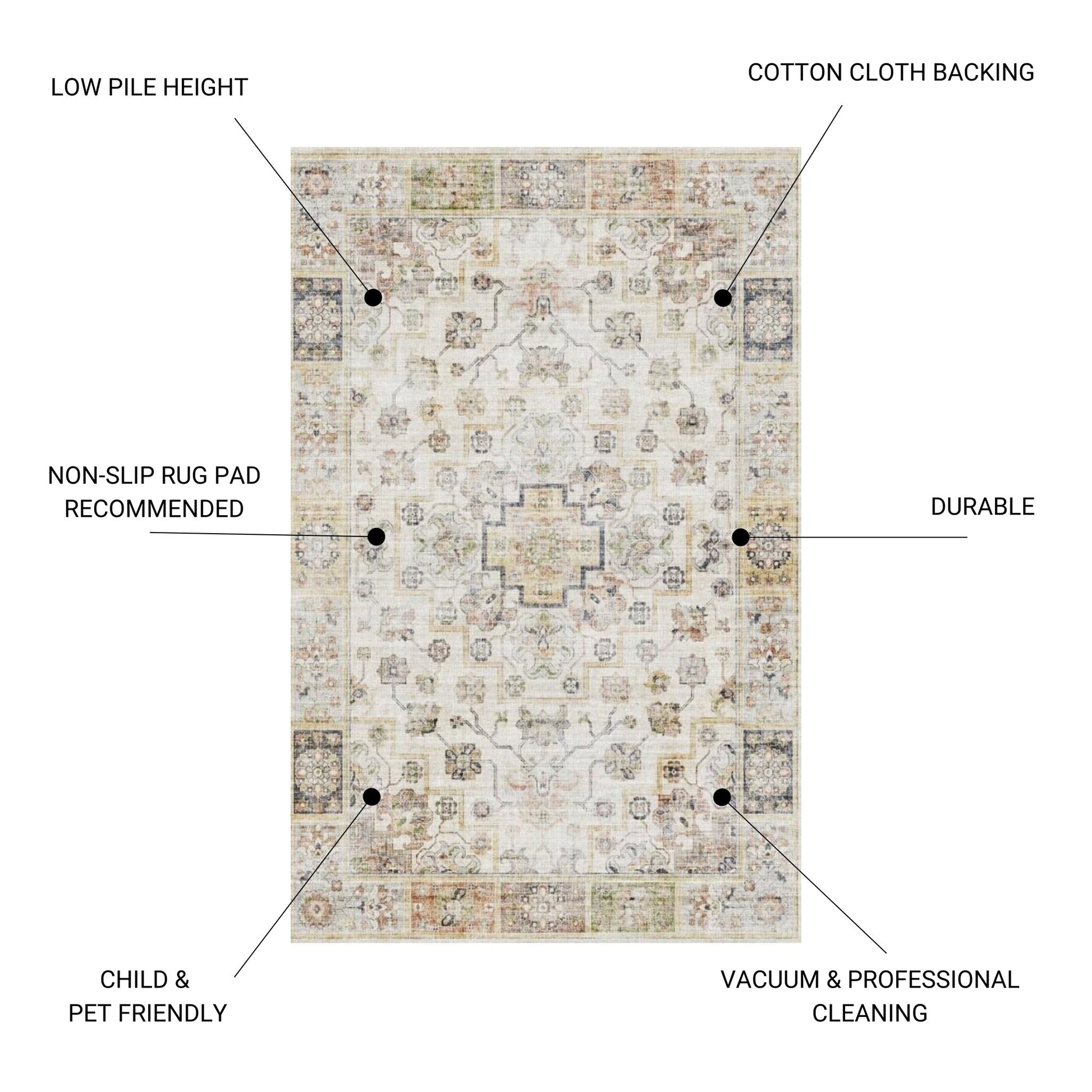 - Additional Recommendations: It is advised to use a non-slip rug pad for extra cushioning and to prevent slippage, protecting both the rug and your flooring from wear and tear.