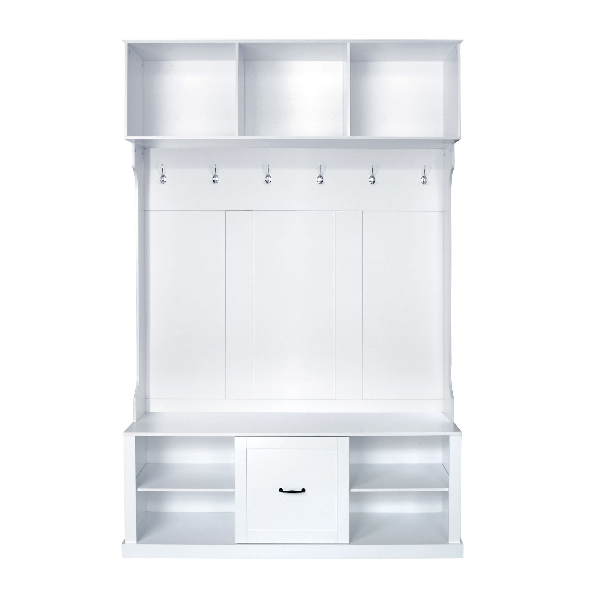 Hall Tree With 6 Hooks, Coat Hanger, Entryway Bench, 3 In 1 Design, A Spacious Drawer For Entrance, Living Room - White