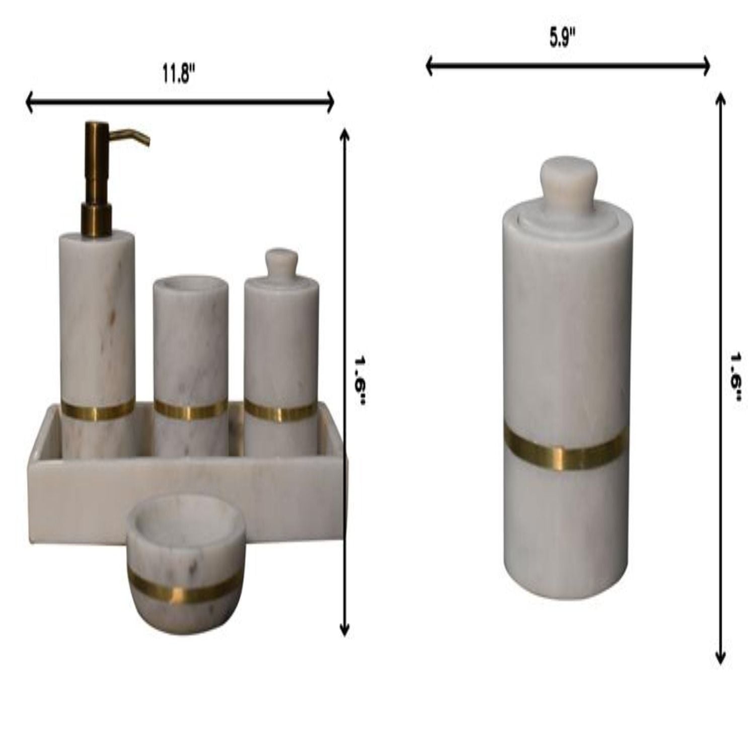 - Elegant 5-Piece Set: Includes a soap dish, soap dispenser, toothbrush holder, cosmetic box holder, and a matching tray.