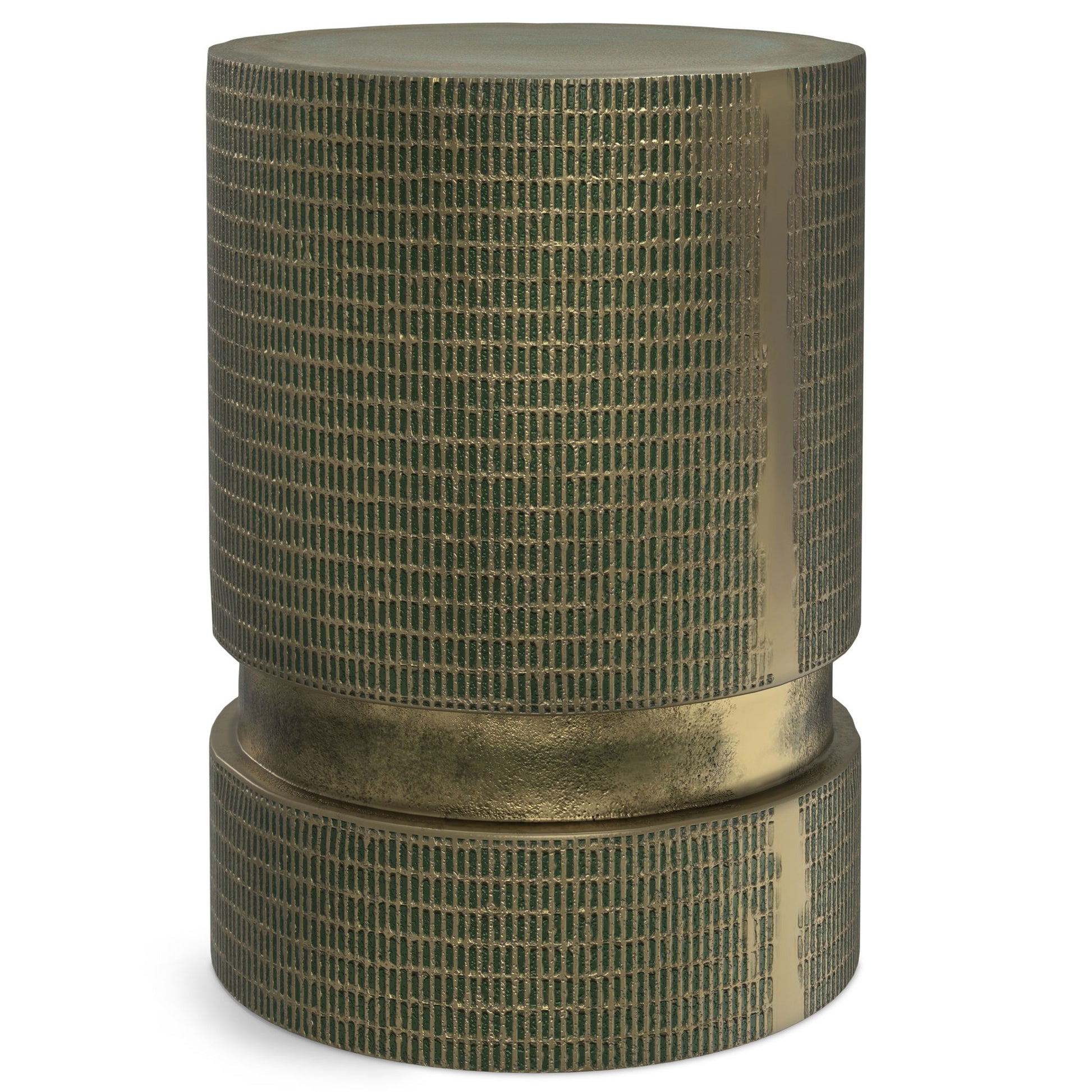 - Hand-finished in Light Green Patina with a subtle texture on the tabletop and a mesh-like textured pattern on the base that make each piece unique.