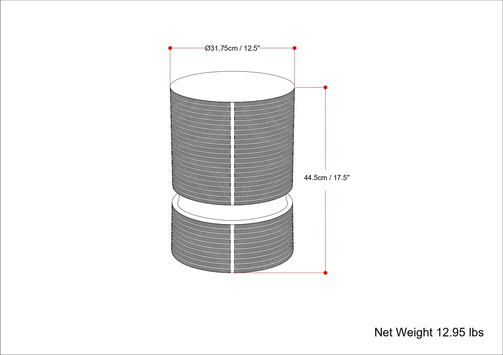 - Features a sleek, cylindrical shape with a circular tabletop.