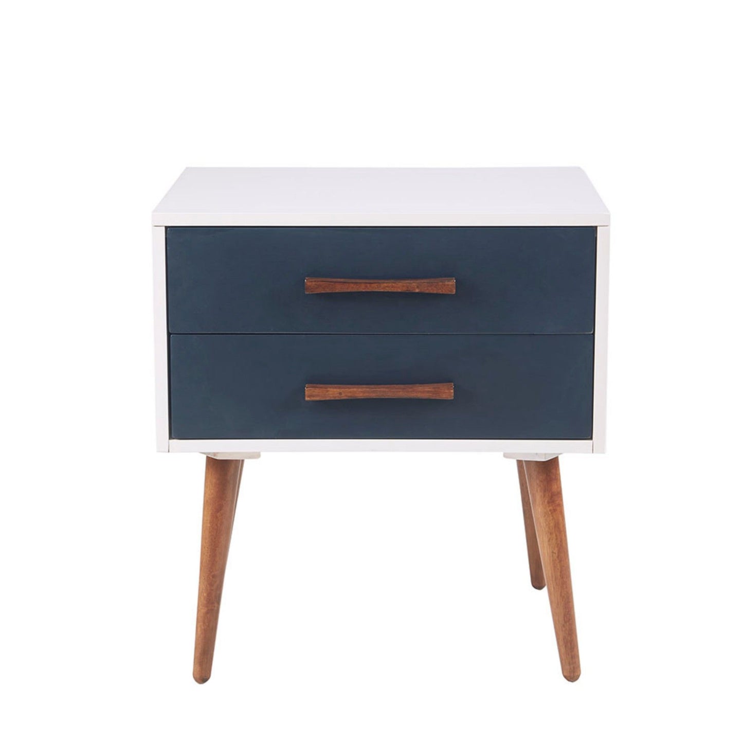 Jeremy - Storage Nightstand With Drawers - Off-White / Navy