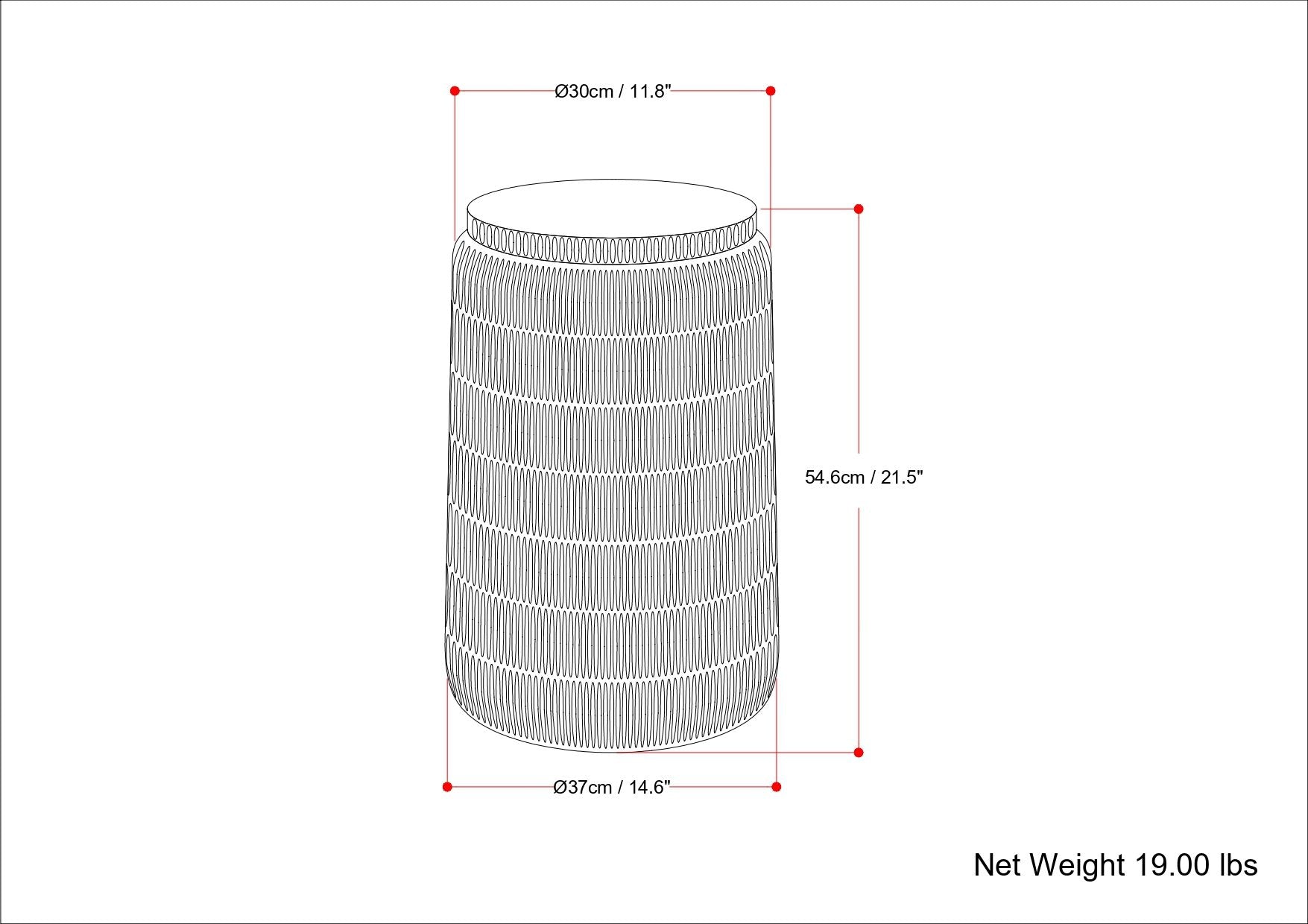 - Features a round, cylindrical shape with a slightly indented circular tabletop.