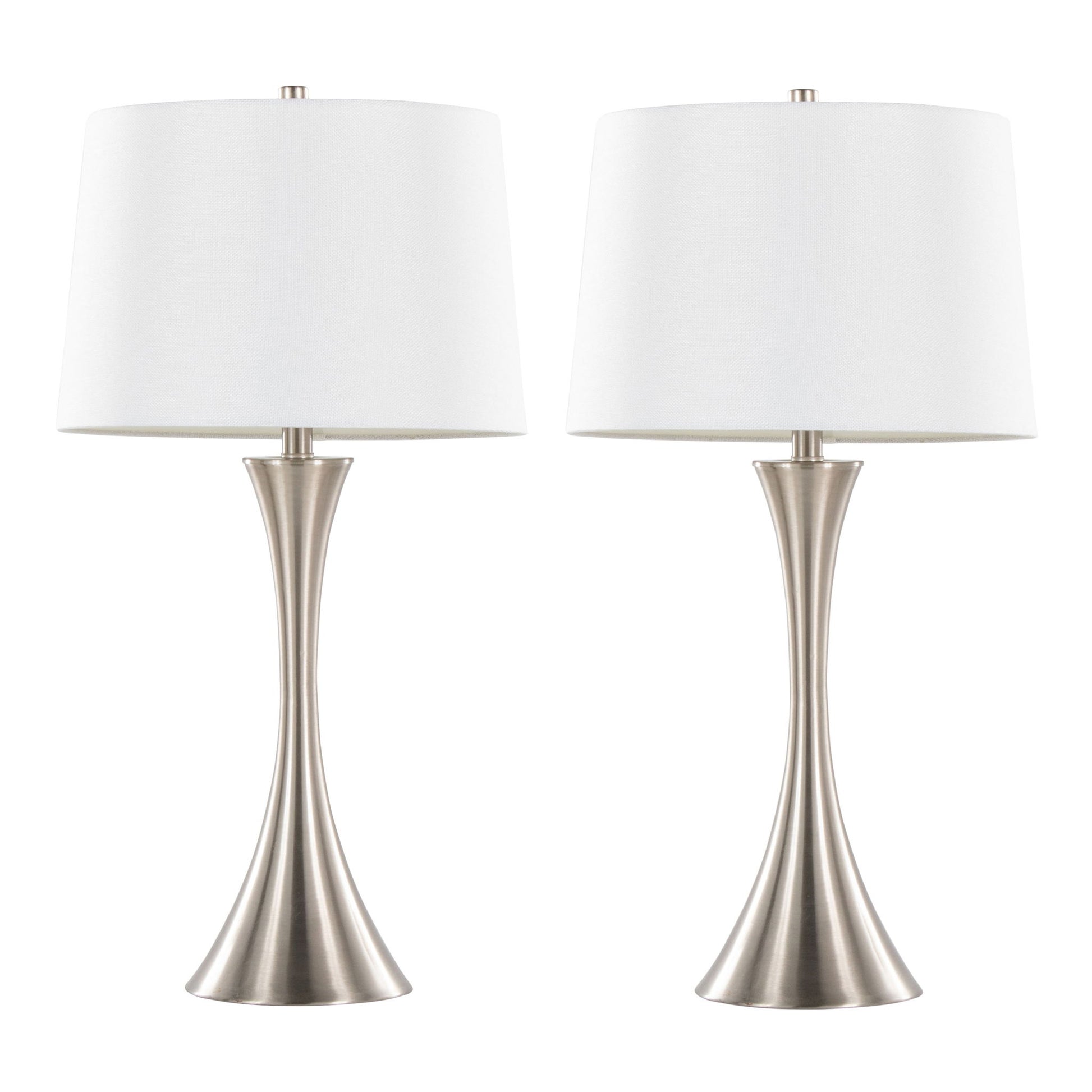 Lenuxe - Contemporary Table Lamp (Set of 2) - Nickel / White