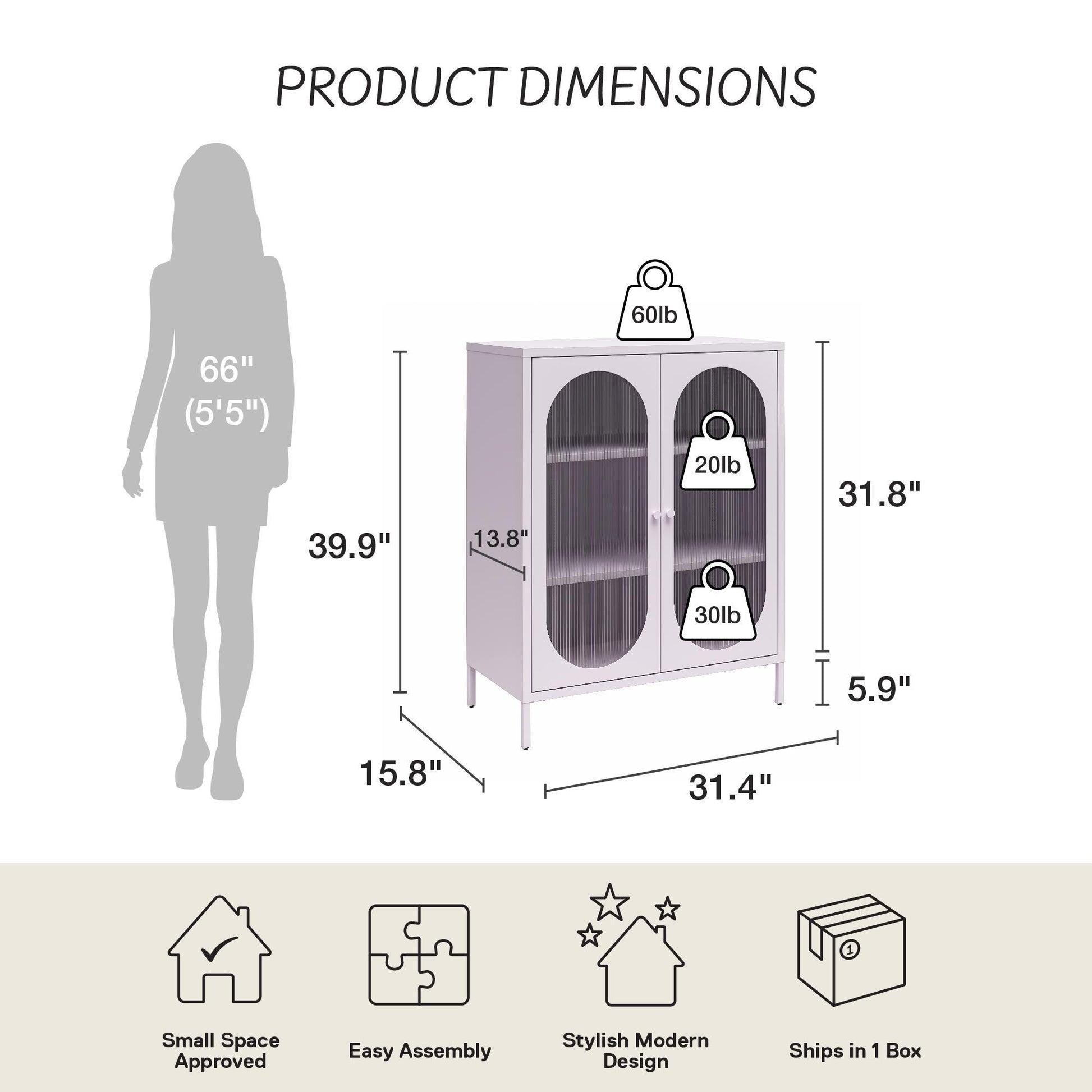 - Metal & Fluted Glass Design: Combines durable metal framing with decorative oval fluted glass doors for a sophisticated and modern look