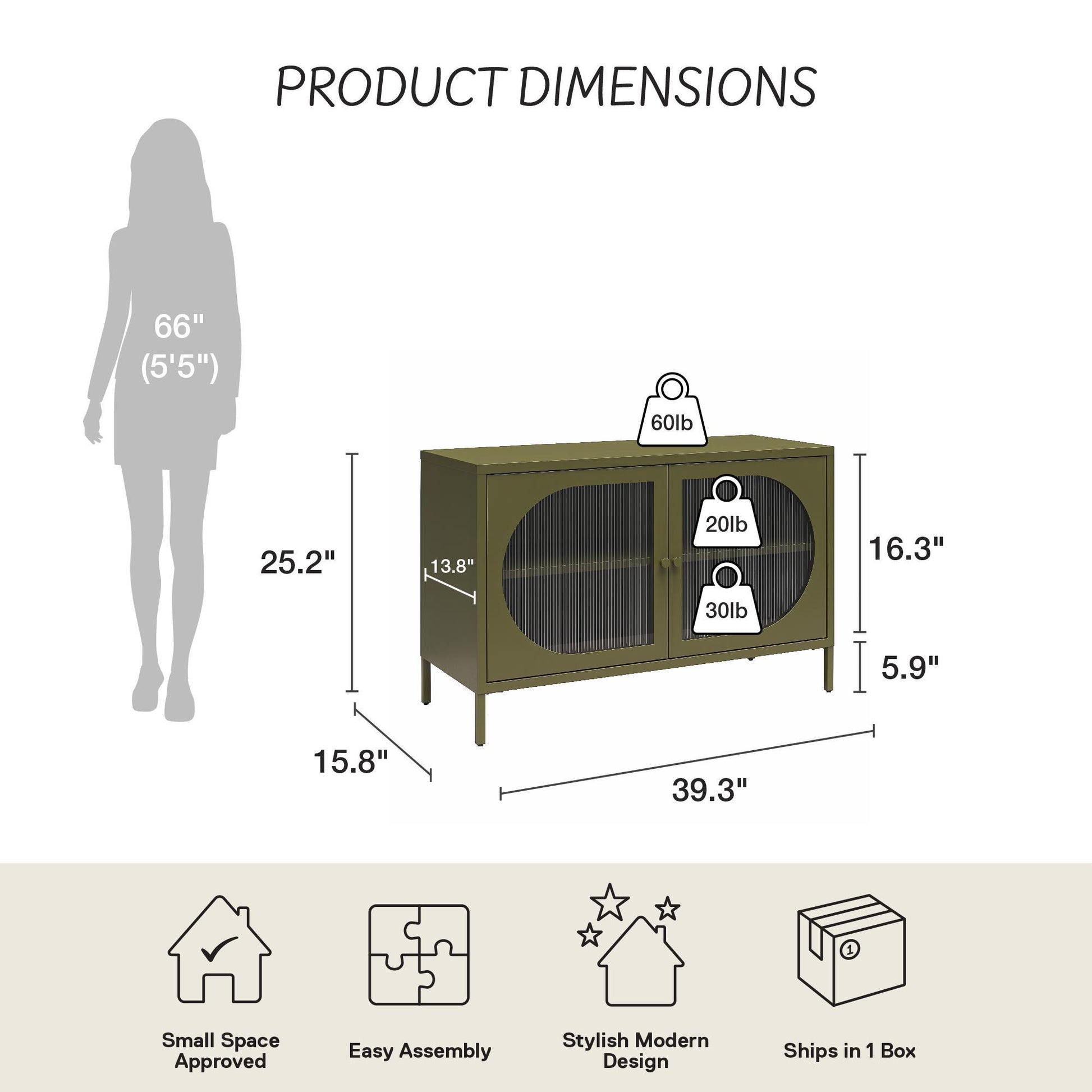 15.75"W x 39.37"D x 25.2"H - 43.56 lb