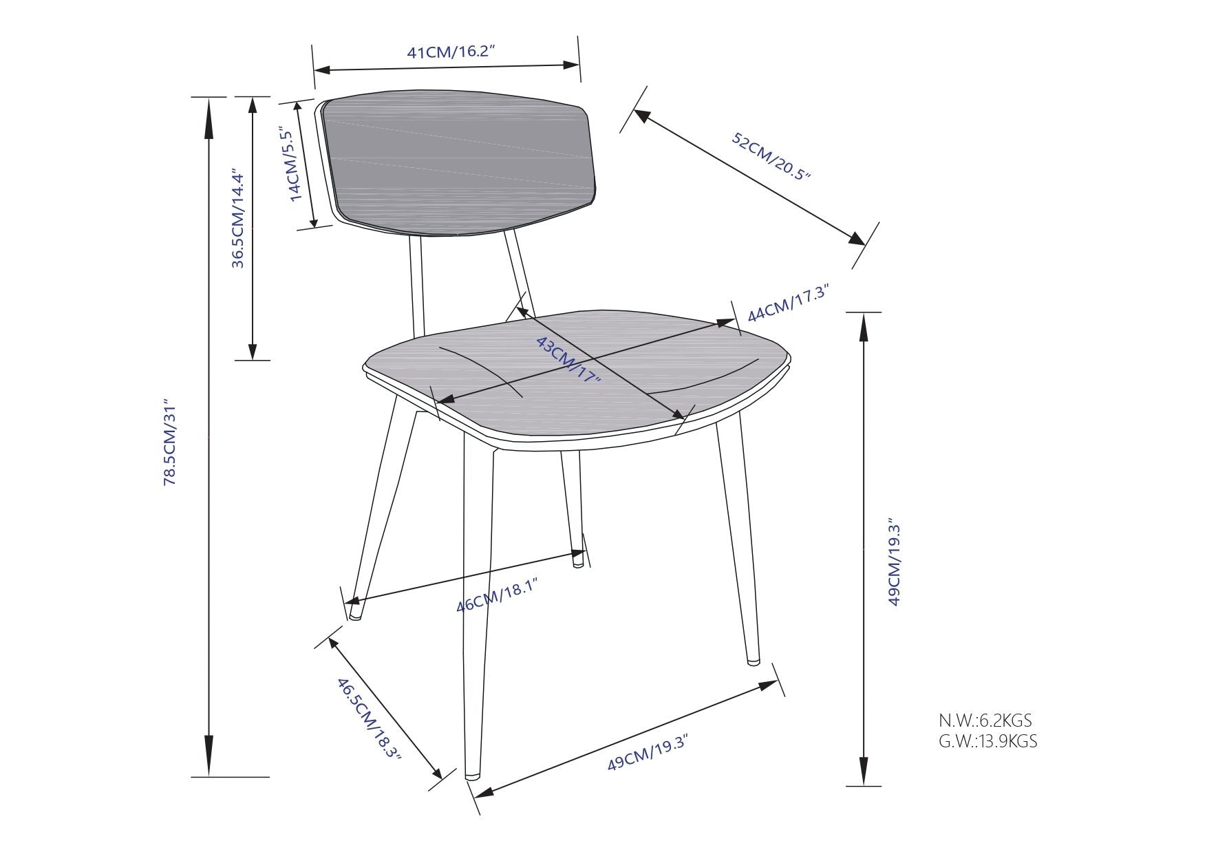 - Features a solid wood veneer backrest for a warm, mid-century modern touch.