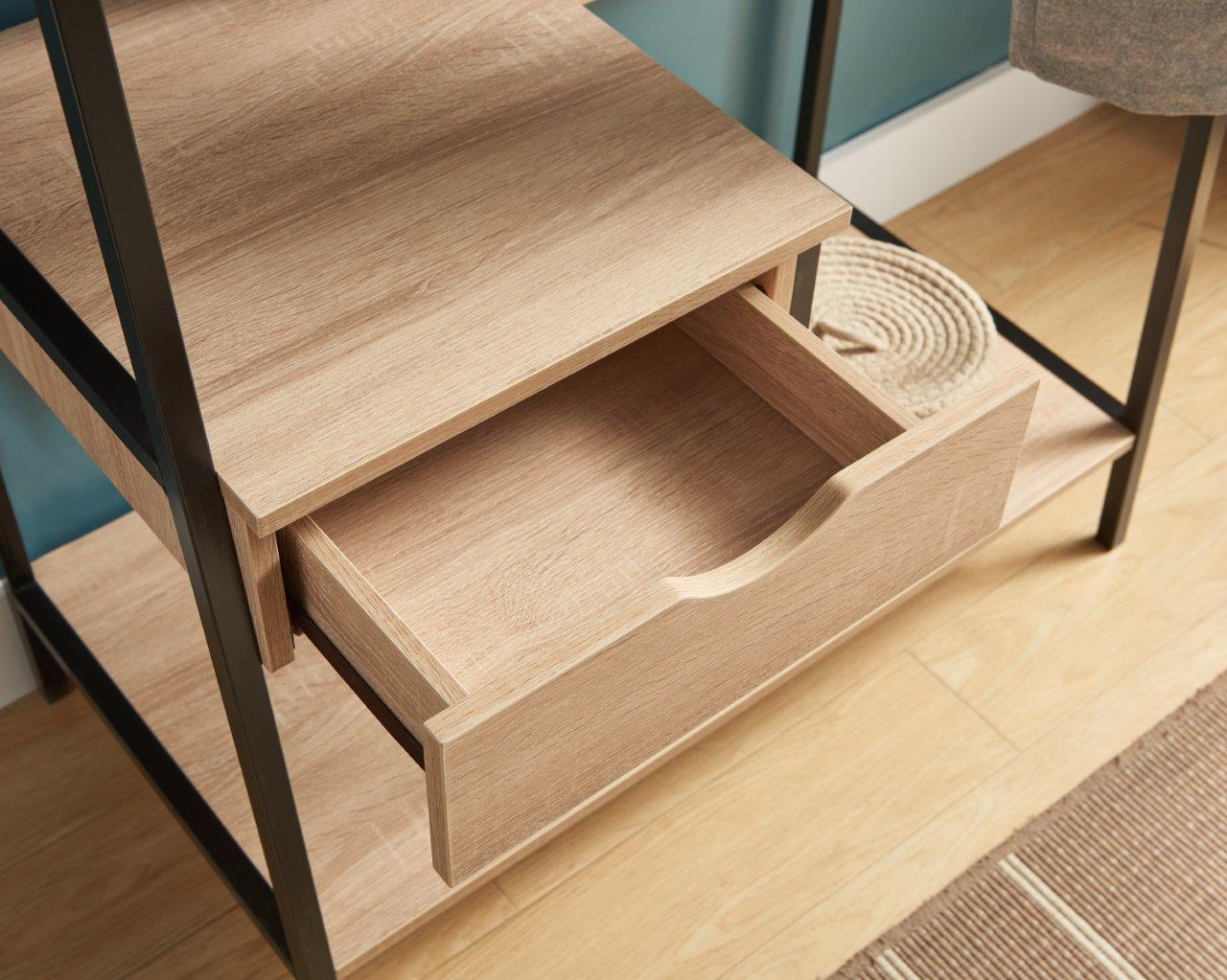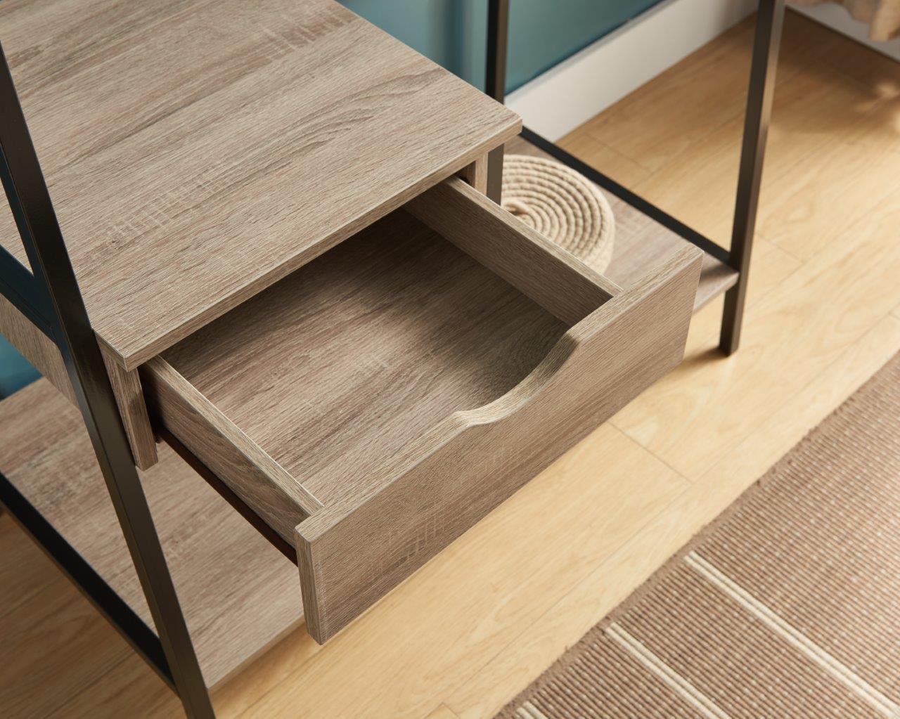 - Sturdy Construction: Built with particle board and metal, the rack supports a hanging weight of up to 30 lbs evenly distributed, with shelf and drawer capacities of 10 lbs and 5 lbs respectively, ensuring durability and reliability.