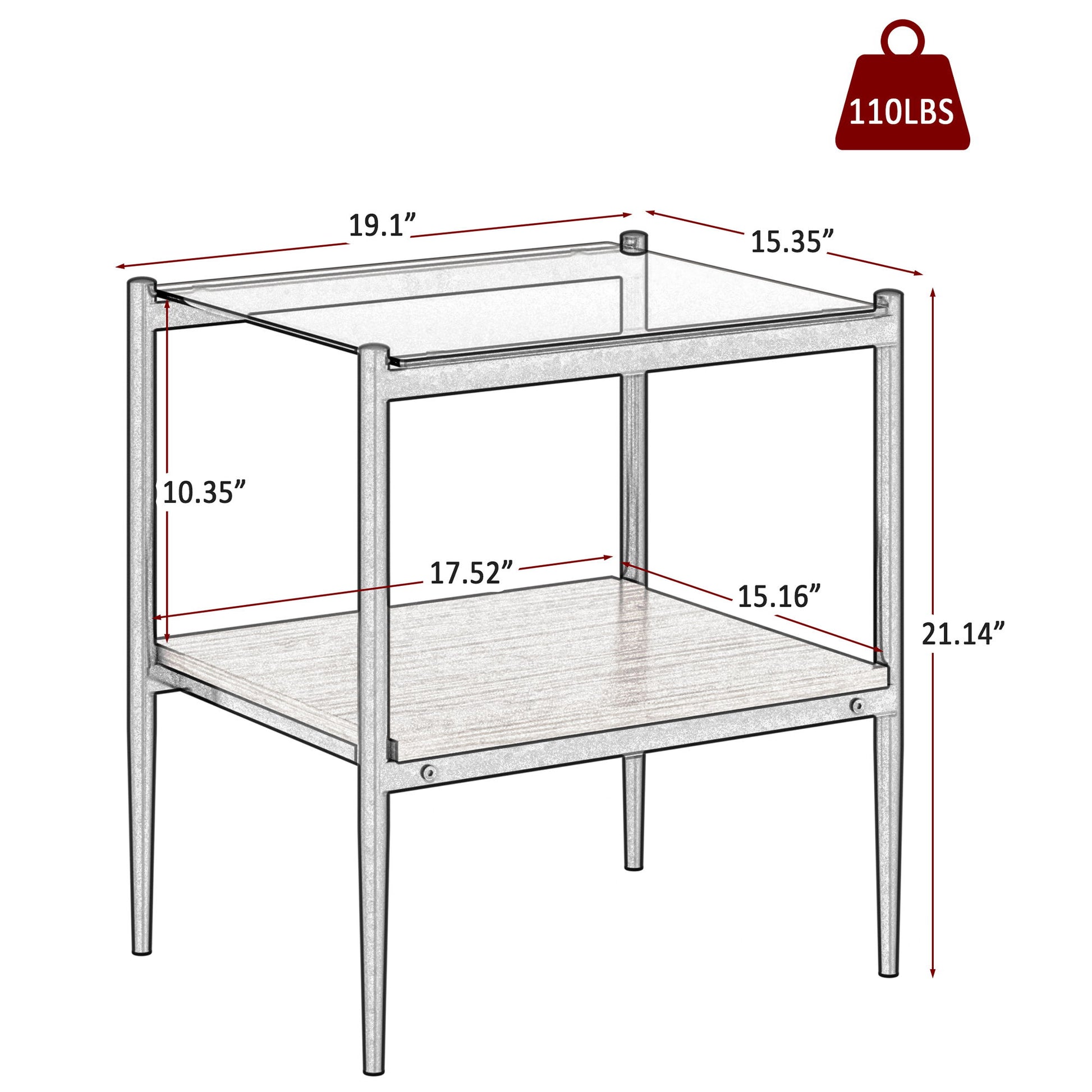 Modern Rectangle End Table (Set of 2) With Tempered Glass Tabletop And Layer - Brown