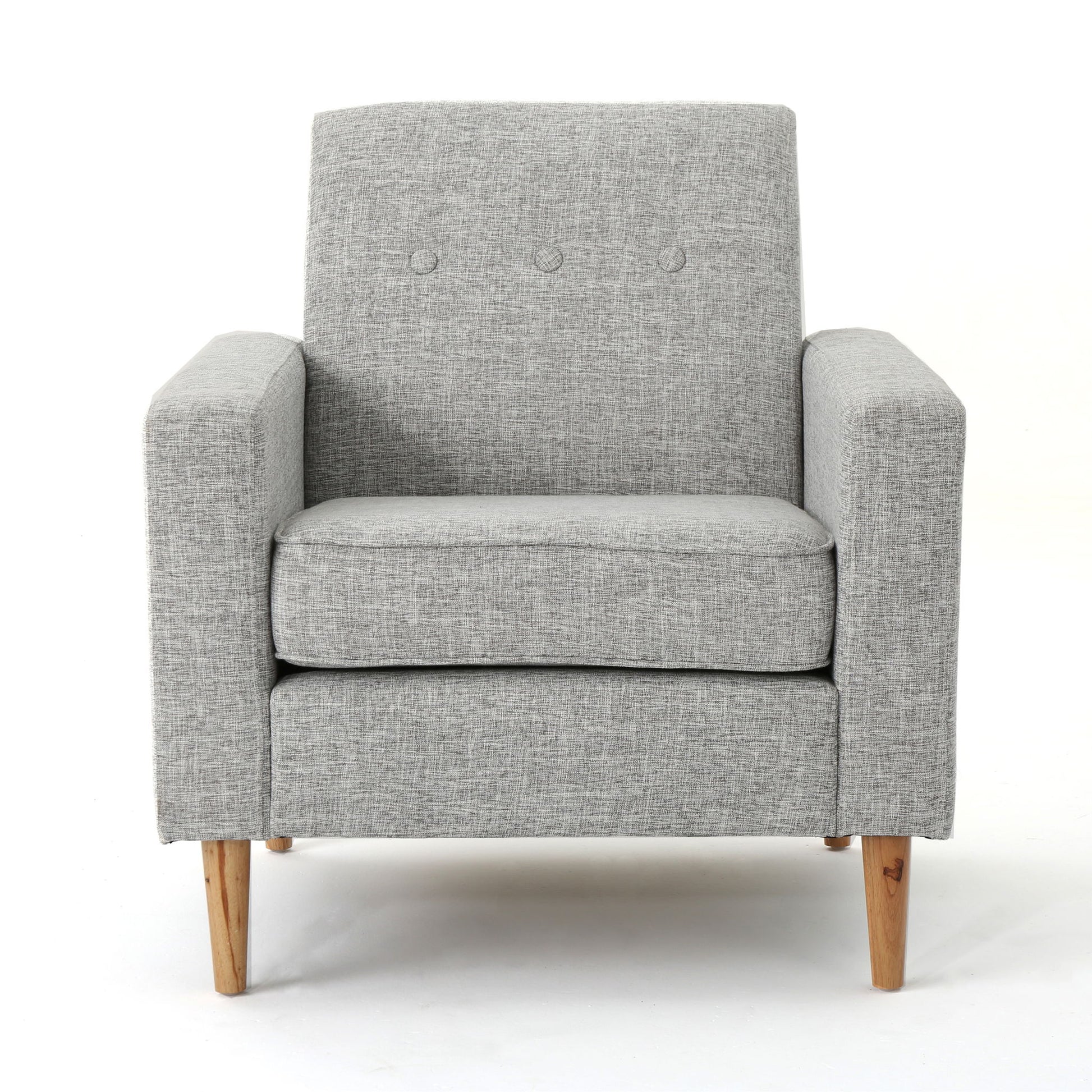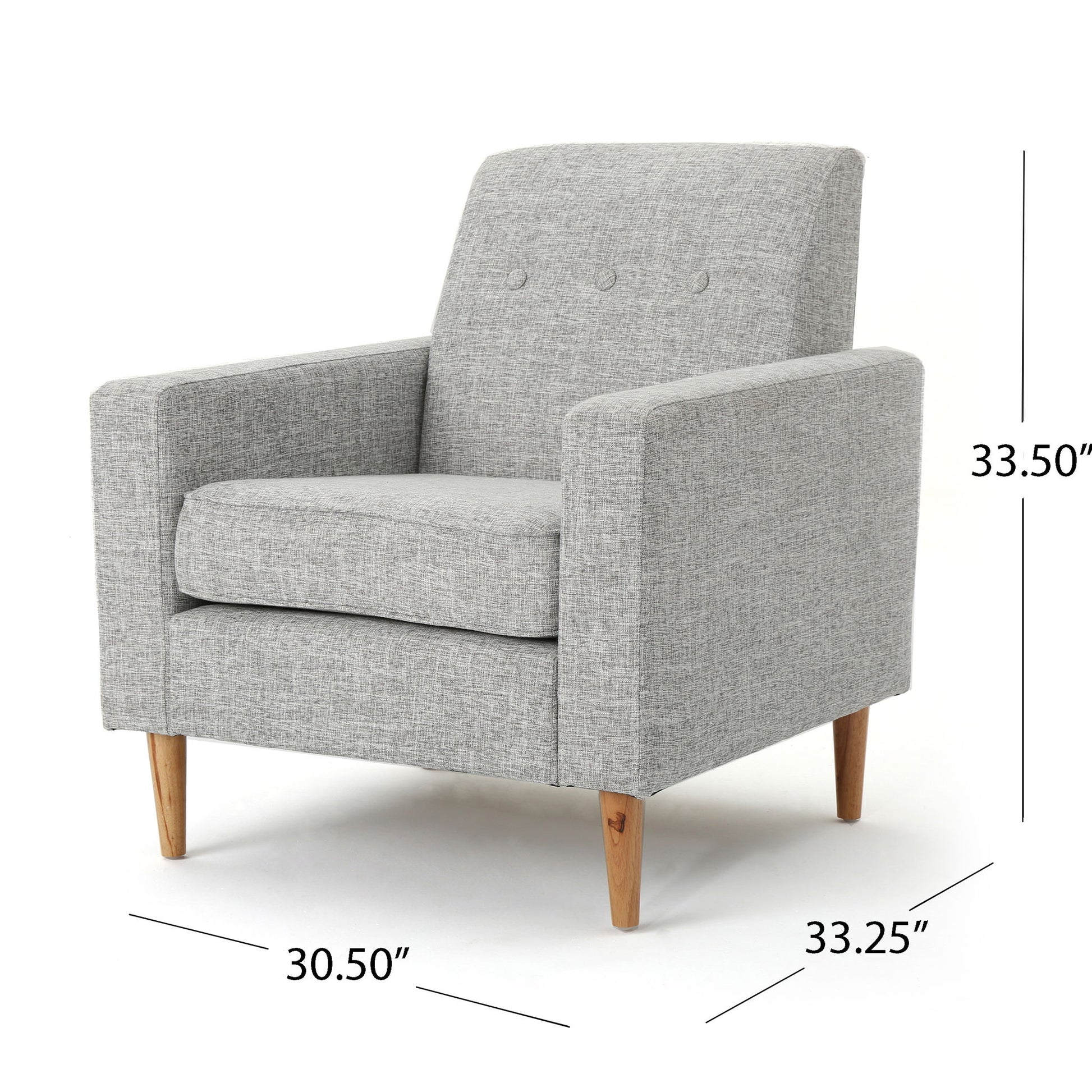 - Timeless Design: With button tufted details and square-off arms and back, this club chair blends timeless charm with modern flair. Its classic elements in a contemporary silhouette promise enduring style in your living room.