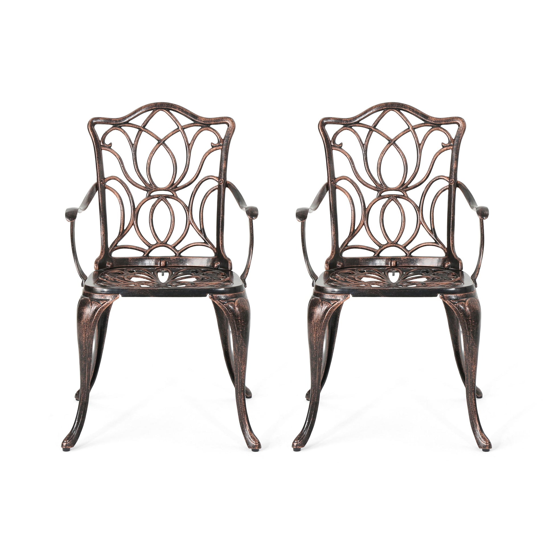 Outdoor Dining Chair With Floral Design And Curved Saber Legs (Set of 2) - Copper