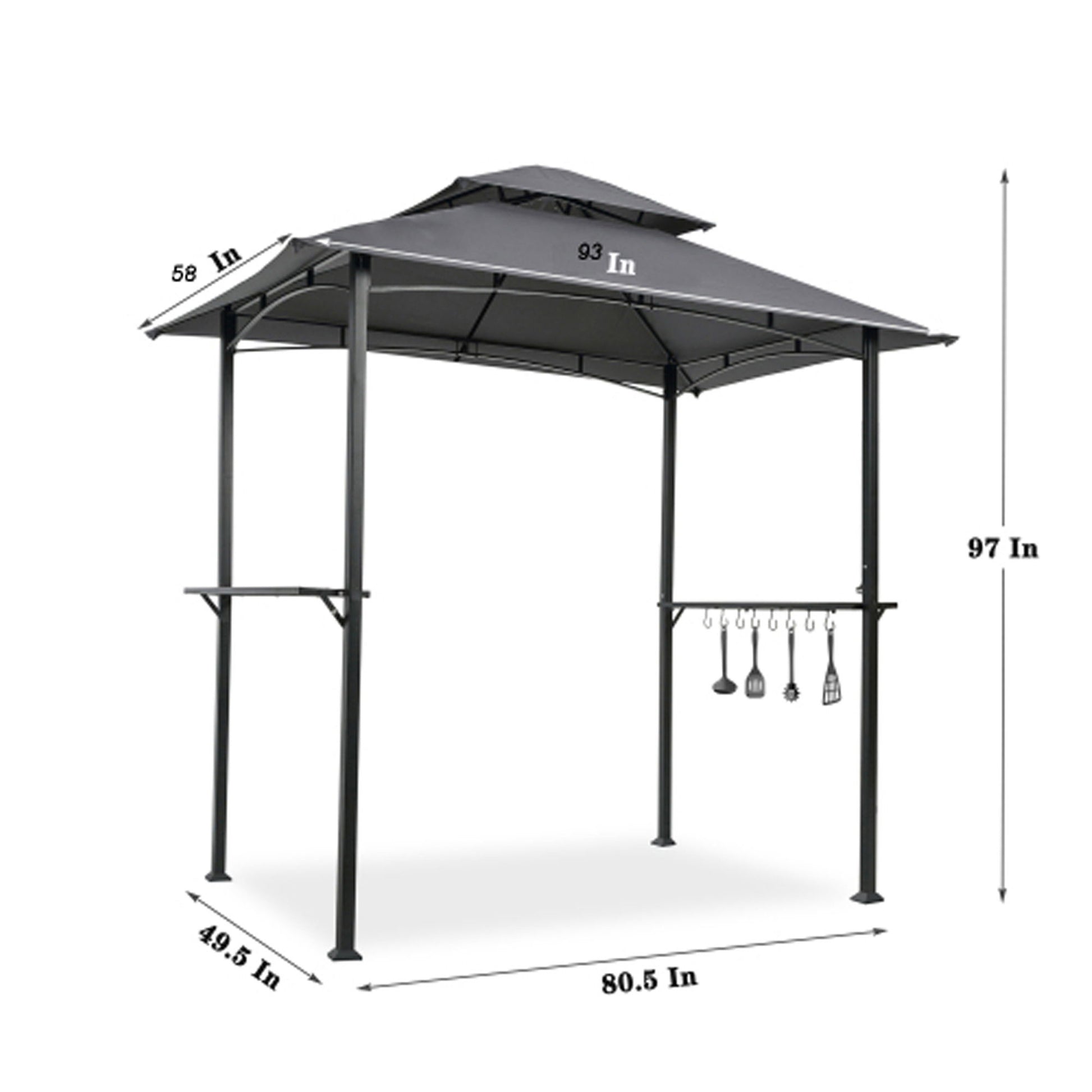 Outdoor Grill Gazebo 8 X 5 Ft With Double Tier Canopy, Steel Frame, Bar Counters & Hook - Gray