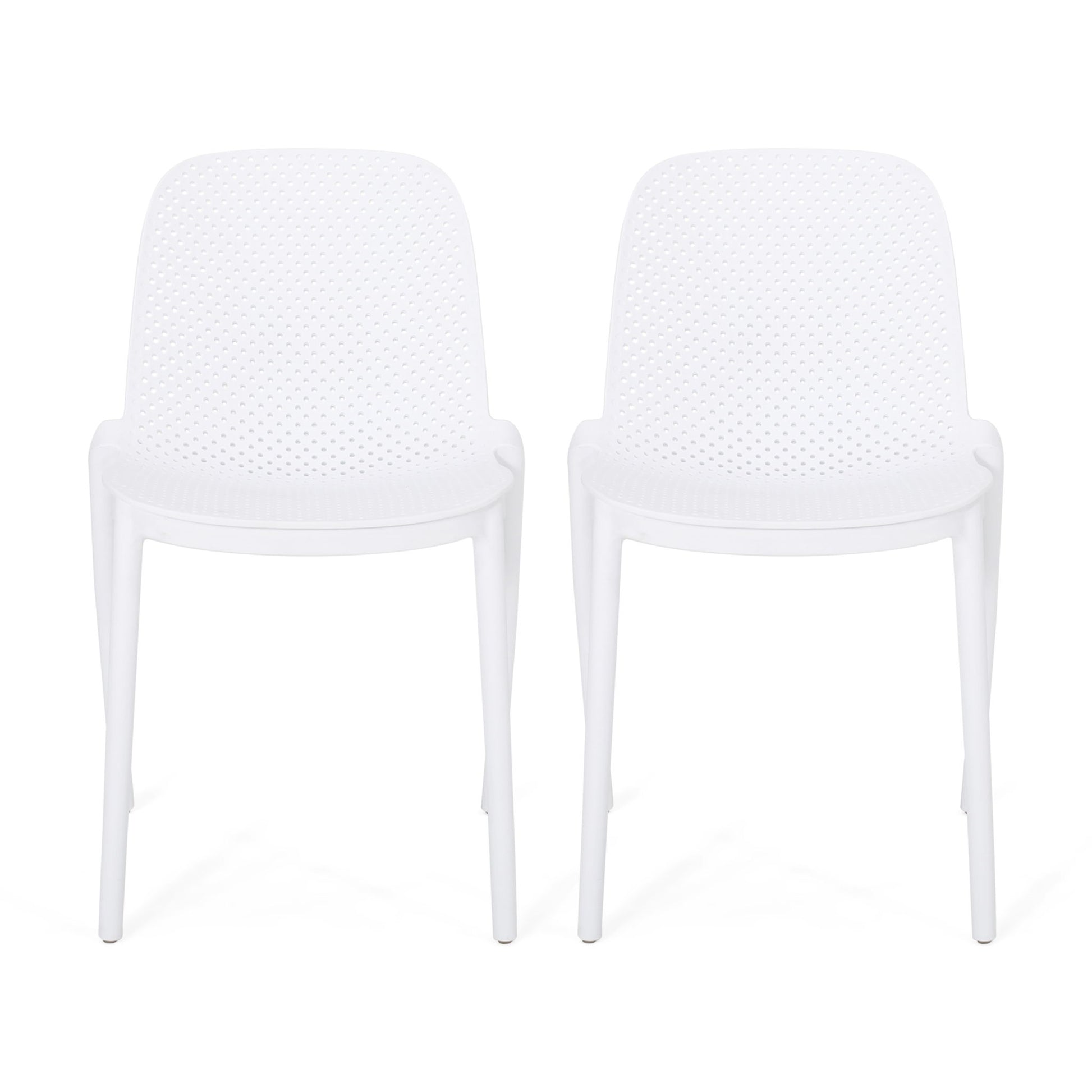 Outdoor Stacking Dining Side Chair (Set of 2) - White