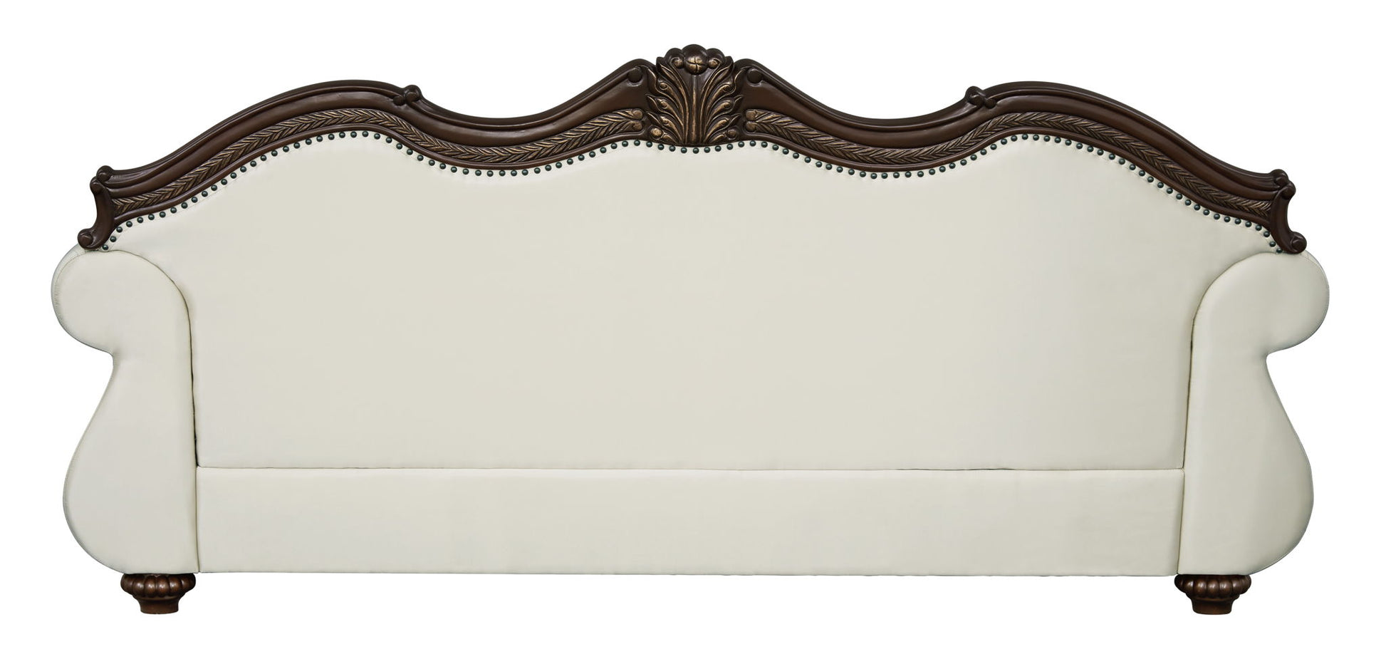 - Elegant Design: Features button-tufted upholstery, a floral-trimmed apron, and artfully crafted legs, creating an elegant and luxurious ambiance suitable for refined living spaces.