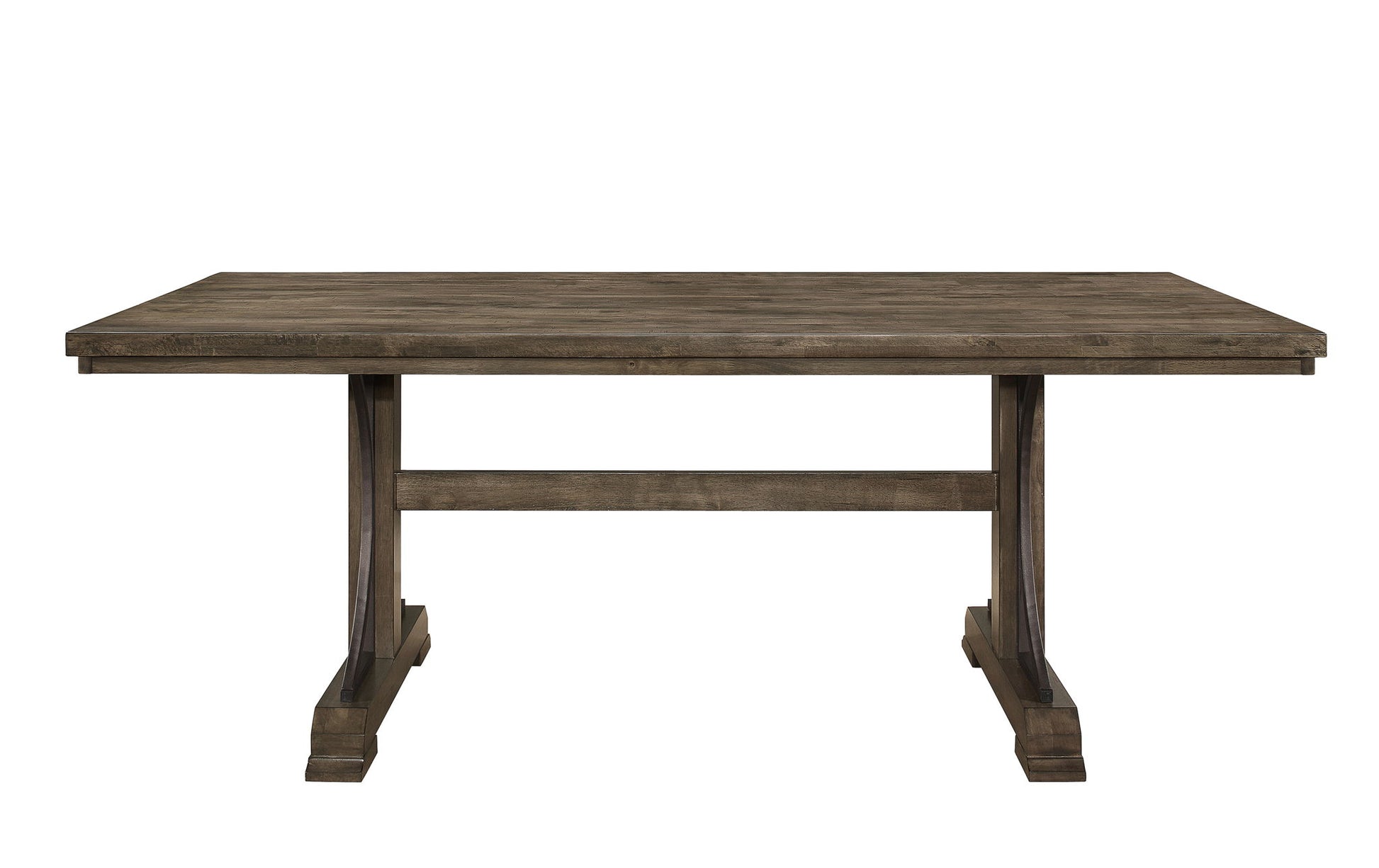 Experience rustic charm combined with urban sophistication in our latest dining ensemble. This collection boasts a robust wooden table with a distressed finish, capturing the essence of reclaimed beauty. The intricate trestle base showcases fine craftsmanship and ensures stability. Paired with classic slatted-back chairs, featuring cushioned seating in a neutral hue, the set promises both style and comfort. Complementing the traditional aesthetic, a matching bench offers versatility in seating arrangements.