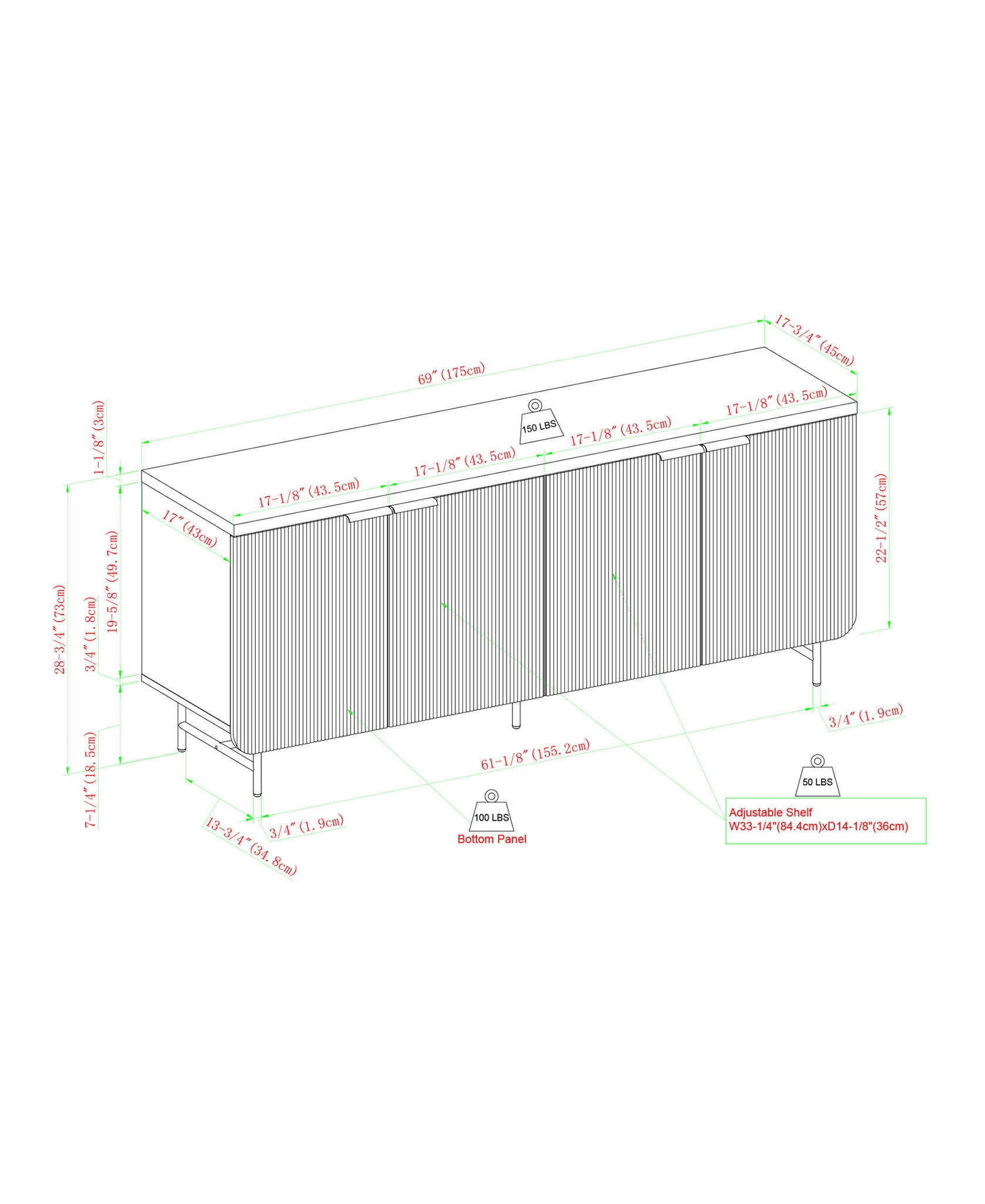 69.0"W x 17.75"D x 28.75"H - 127.0 lb