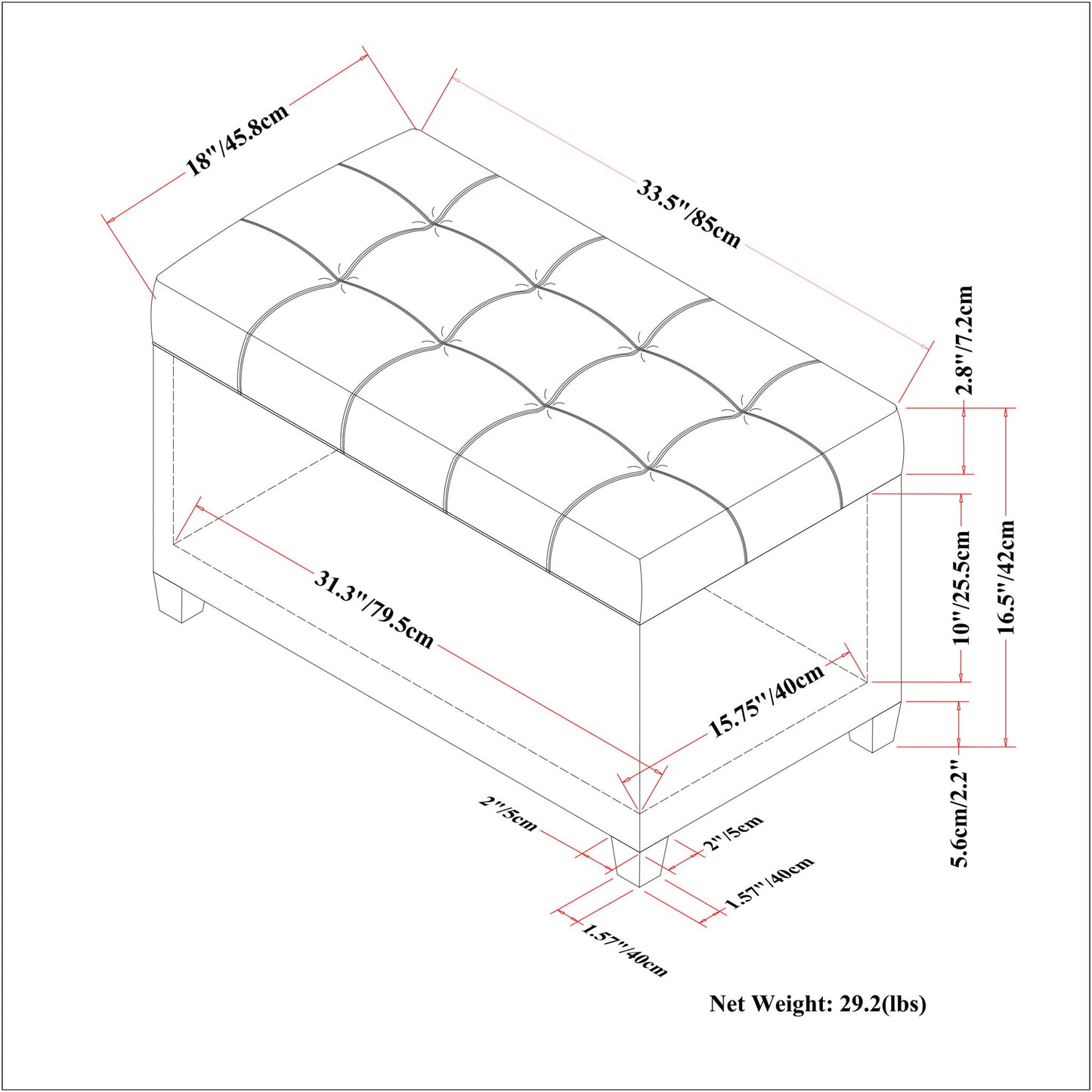- Multi-functional ottoman can be used in bedroom, living room, family room, hallway as an entryway bench, foot stool, accent furniture or provide additional sitting