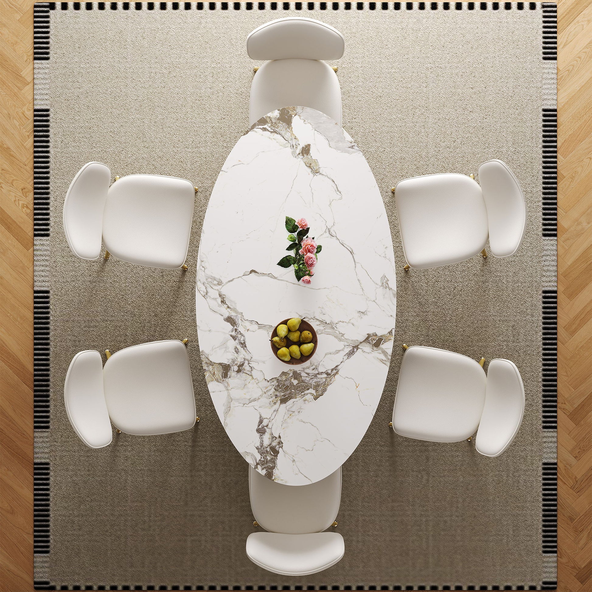 Oval Sintered Stone Dining Table With 6 Chairs - Brown / White