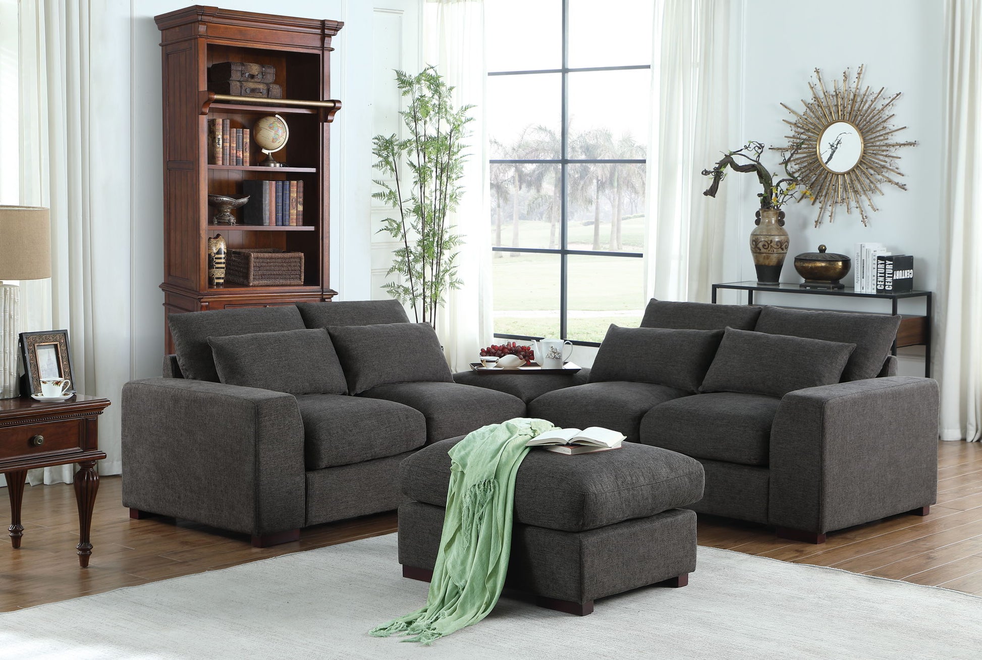 Tatman - Linen Blend Sectional With 2 Ottomans - Dark Gray