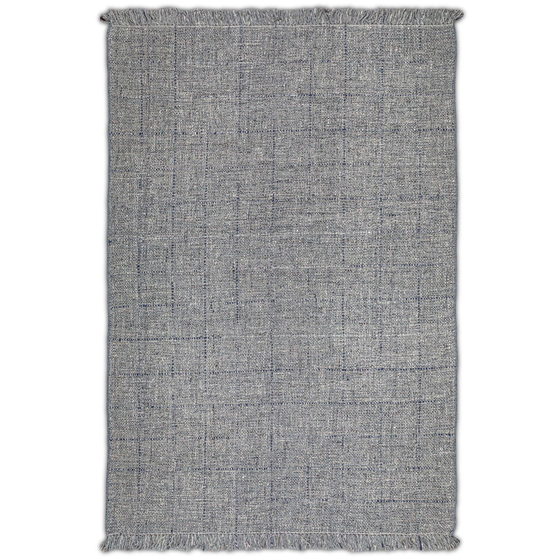 - Detailed with a woven pattern in grey and blue featuring a hand-knotted fringe