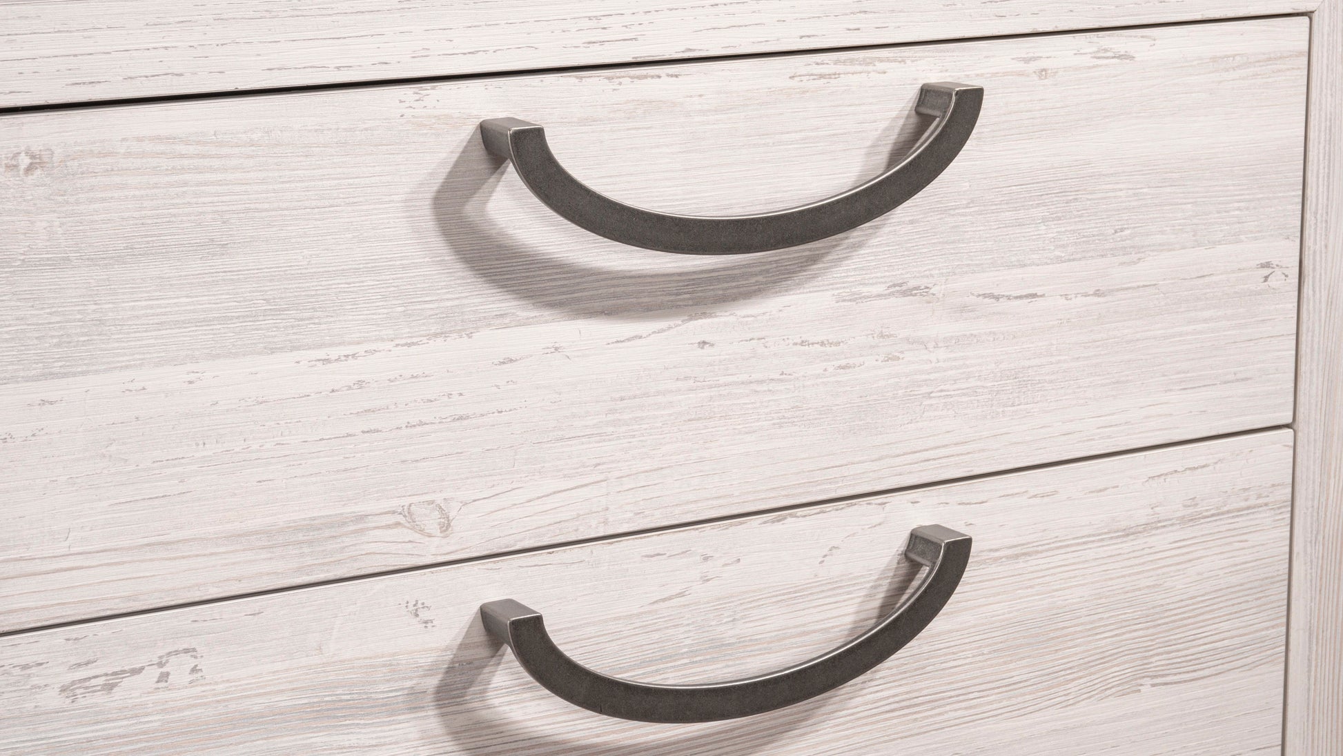 Experience the blend of minimalism and elegance with this chic bedroom ensemble. Crafted with a light and airy finish, it creates an inviting atmosphere while the sleek lines and subtle contrasts in color emphasize a modern aesthetic. Each piece showcases thoughtful craftsmanship with unique drawer pulls that add a touch of character. The gracefully arched headboard anchors the space, offering a serene focal point.