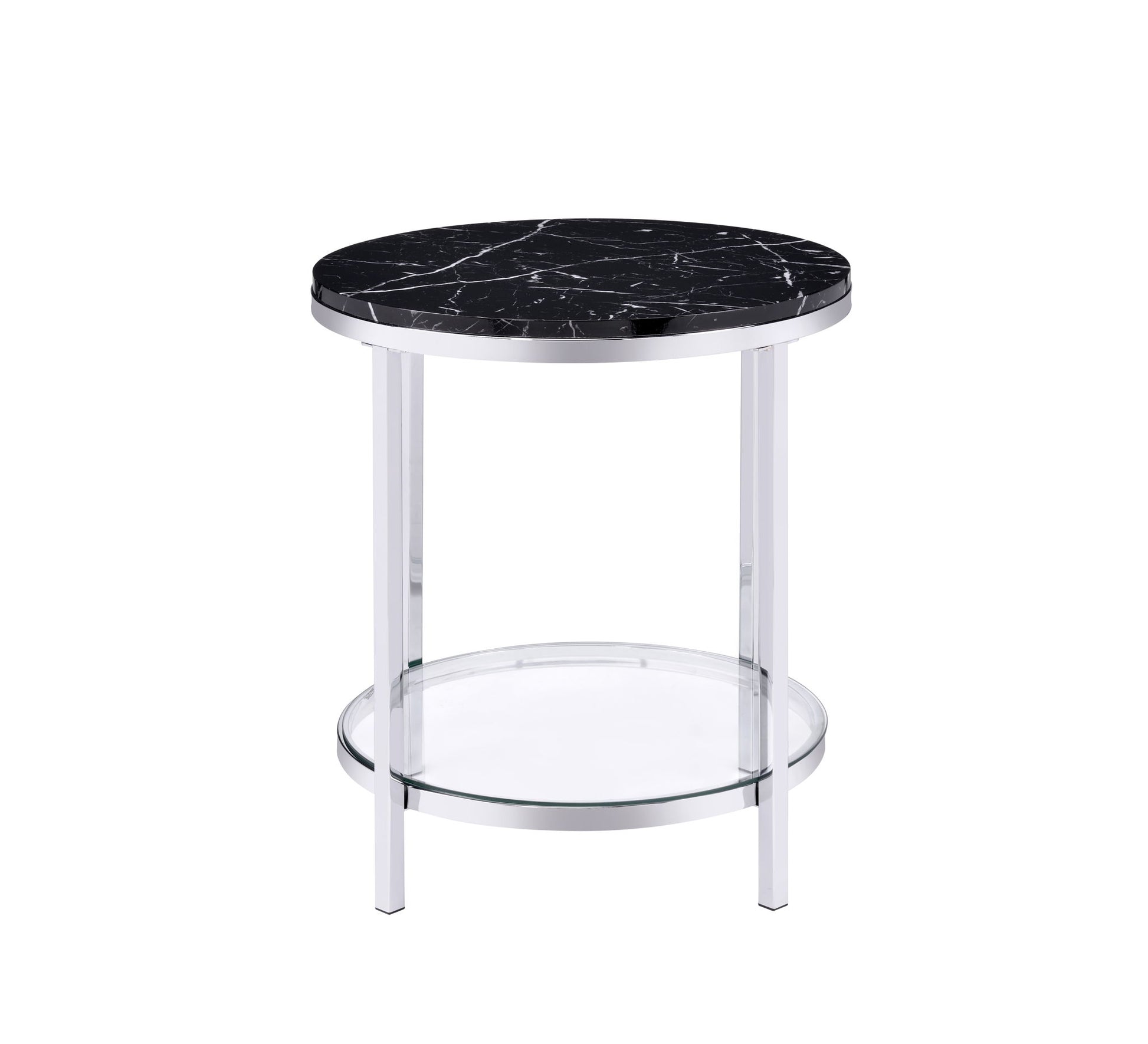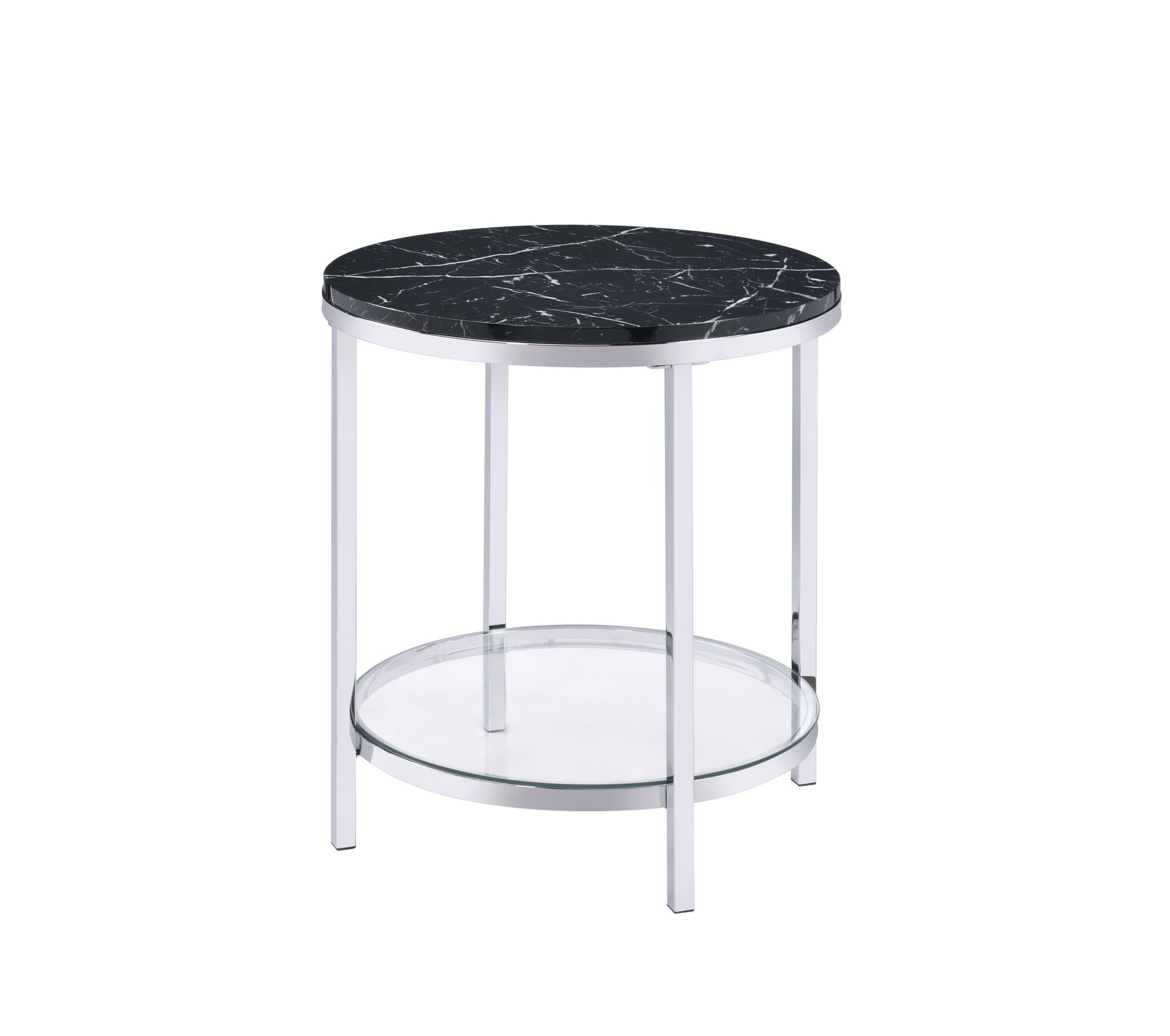 Virlana - Faux Marble Top End Table - Black / Chrome