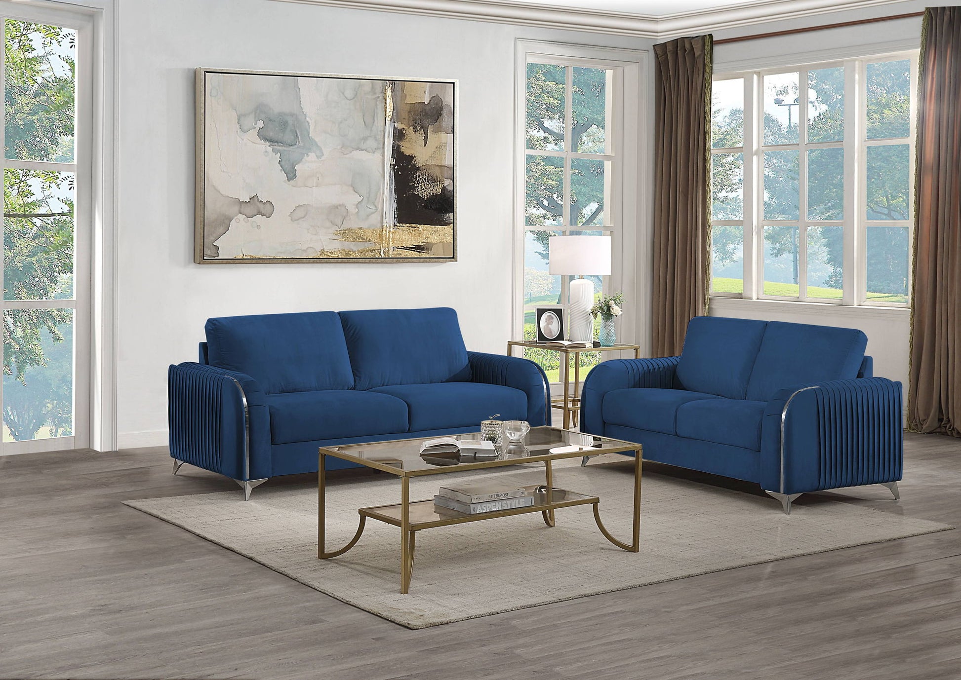 Wenona - Velvet 2 Pieces Living Room Set - Blue